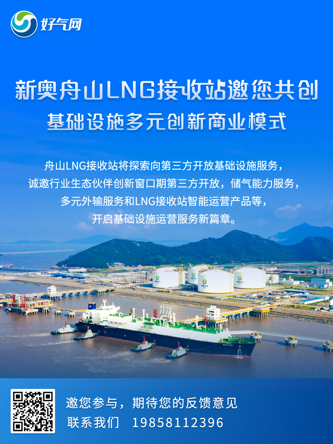 舟山LNG接收站面向行业生态伙伴推出基础设施服务产品,针对年度的接收站剩余能力提供短期或中长期的接卸、存储、加工、外输等服务。 诚邀您参与问卷调研,助力开启基础设施运营服务新篇章!长按首页图片即可填写问卷。 详情可致电:19858112396。