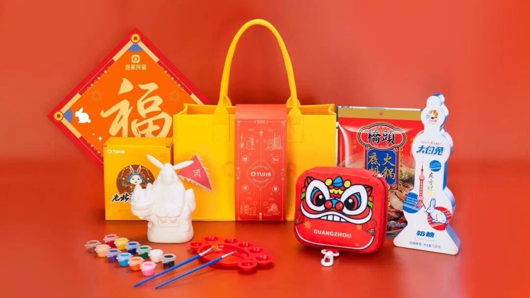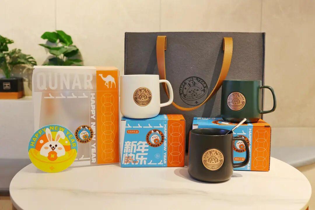 01互联网大厂2023新年礼盒合集首先第一个出场的是携程旅行的礼盒设计,今年的设计相对来说还是比较走心的,以皮革行李箱作为整个礼盒的外观包装,附上兔年祝福的小贴纸呼应,整体俏皮又可爱。