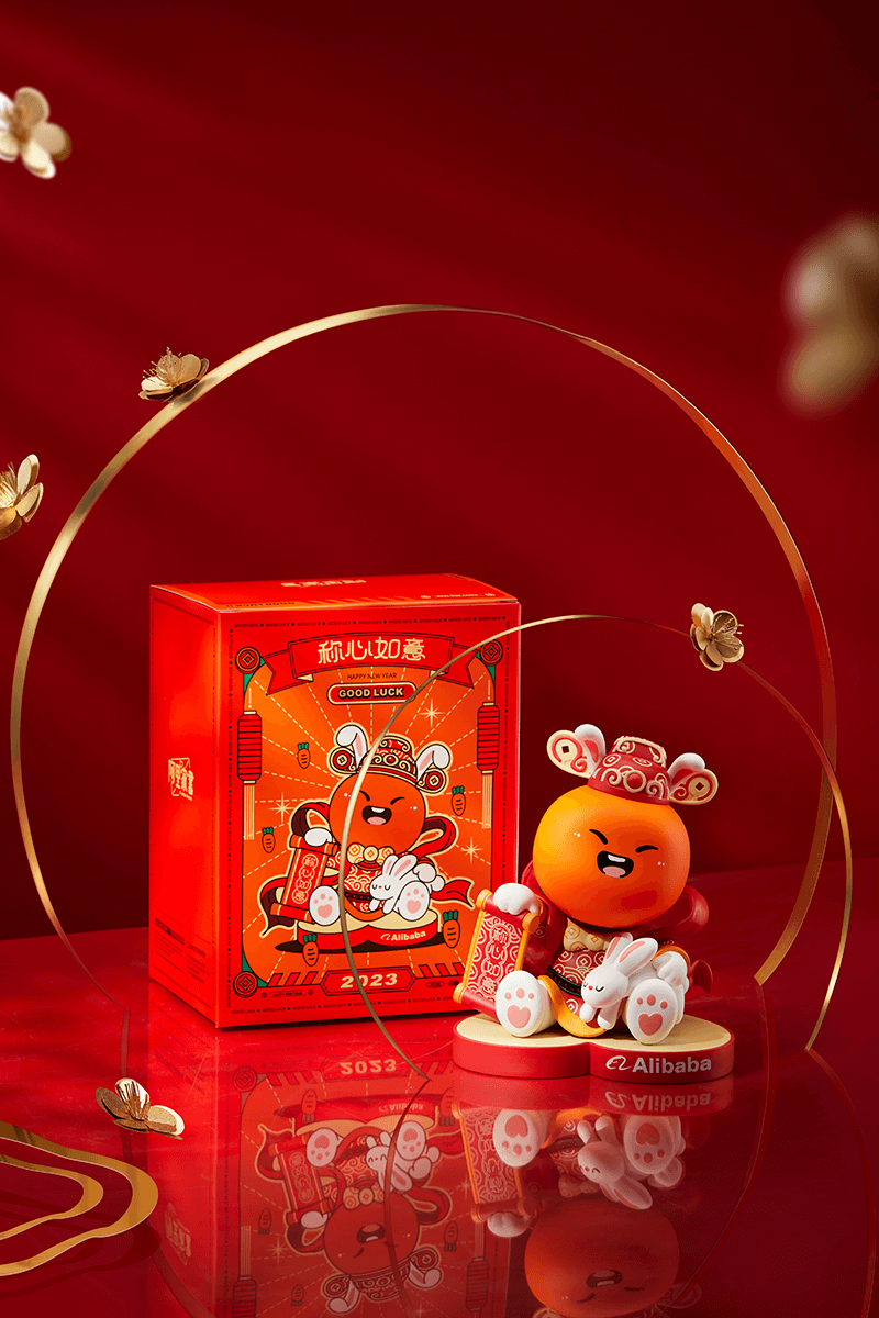 阿里的礼盒设计,则是围绕新春气息展开,通过趣味性的对联和展示的画框,再结合上可爱的IP角色,还是很讨喜气的。