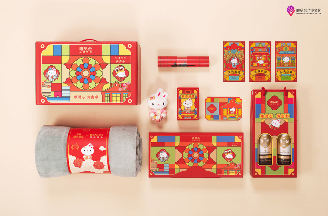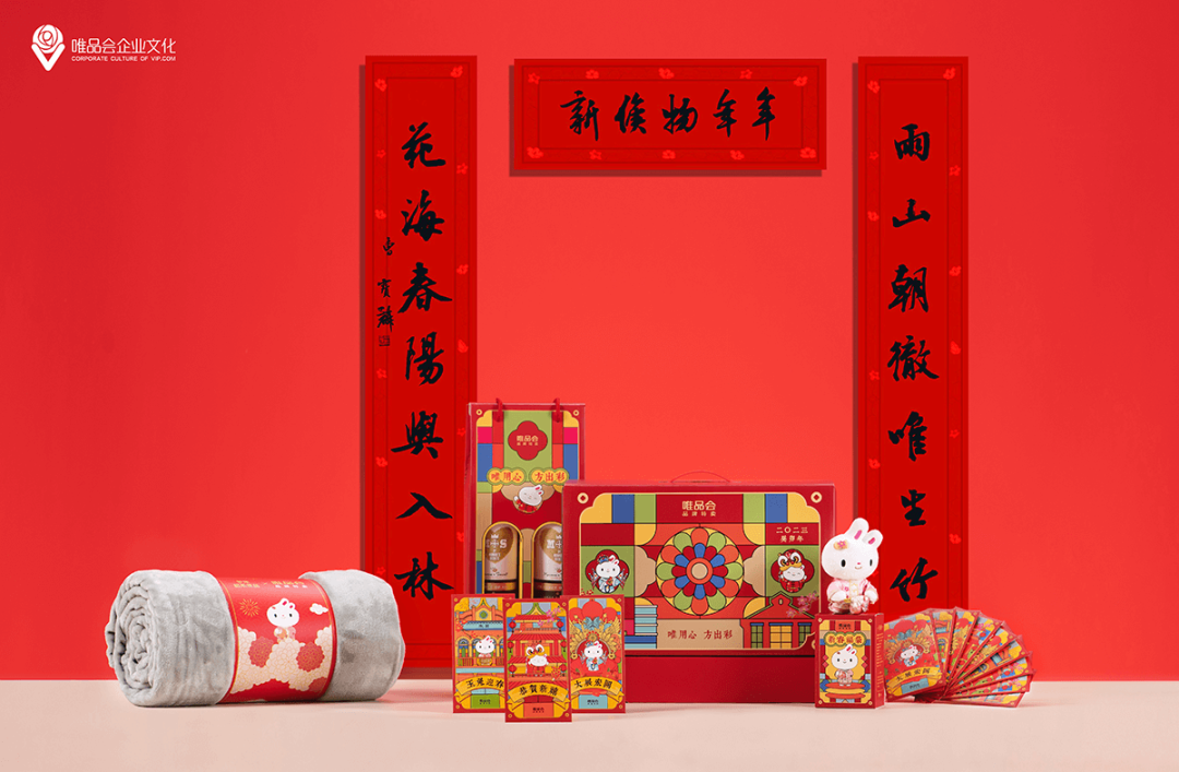 唯品会今年的礼盒包装设计,整体围绕趣味性的兔年插画为主,在产品层面以红包、对联等等为核心元素,很有新春氛围。