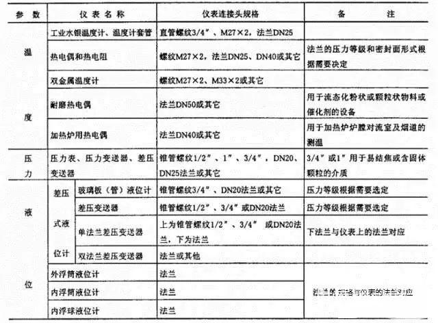 6.仪表连接头 (管嘴) 的长度应根据工艺管道或设备的隔热层厚度确定。螺纹或法兰式仪表连接头 (管嘴) 的规格见表3。