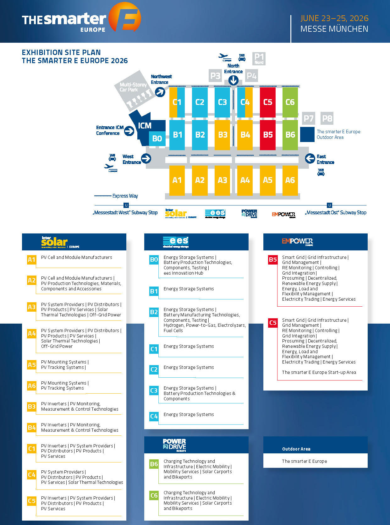 更智能的E为参展商和参观者提供了全方位的能源相关主题。smart E由四个独立的展会(Intersolar Europe,ees Europe, Power2Drive Europe和EM-Power)组成,每个展会都有明确的行业重点。同时,在能源领域非常重要的产品和主题之间的联系通过展览的相互作用得到很好的体现。