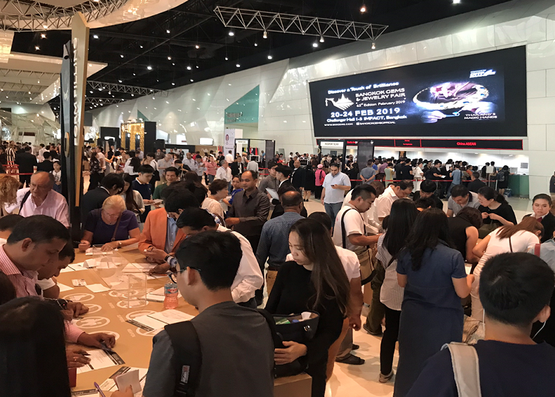 泰国曼谷宝石珠宝展上届展览面积达2.5万平方米。来自中国、日本、中国香港、意大利、印度尼西亚、印度、迪拜、土耳其等地的460家参展商参展。参观人数达到2.7万人次。大多数参展商对展会的效果以及展会的设施和服务给予了非常积极的反应和评价,并能够建立长期稳定的客户关系。