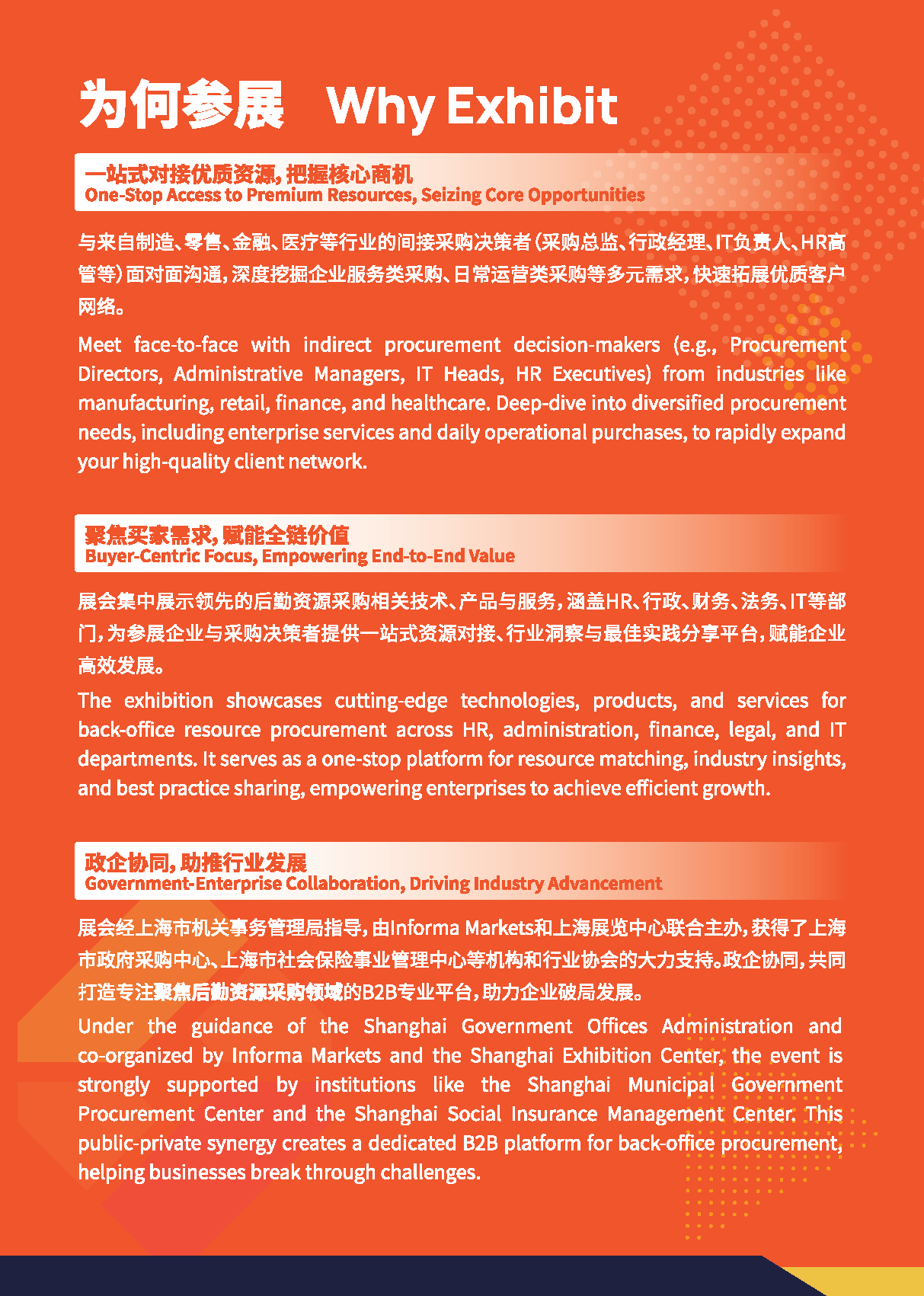 上海国际后勤资源采购贸易展览会(IPTE)由Informa Markets与上海展览中心联合主办,汇聚全球领先企业服务供应商,是专注于企业后勤采购产业链解决方案的B2B平台。展会面向HR、行政、财务、法务IT等领域的采购决策者,提供一站式资源对接、行业洞察与最佳实践分享平台。