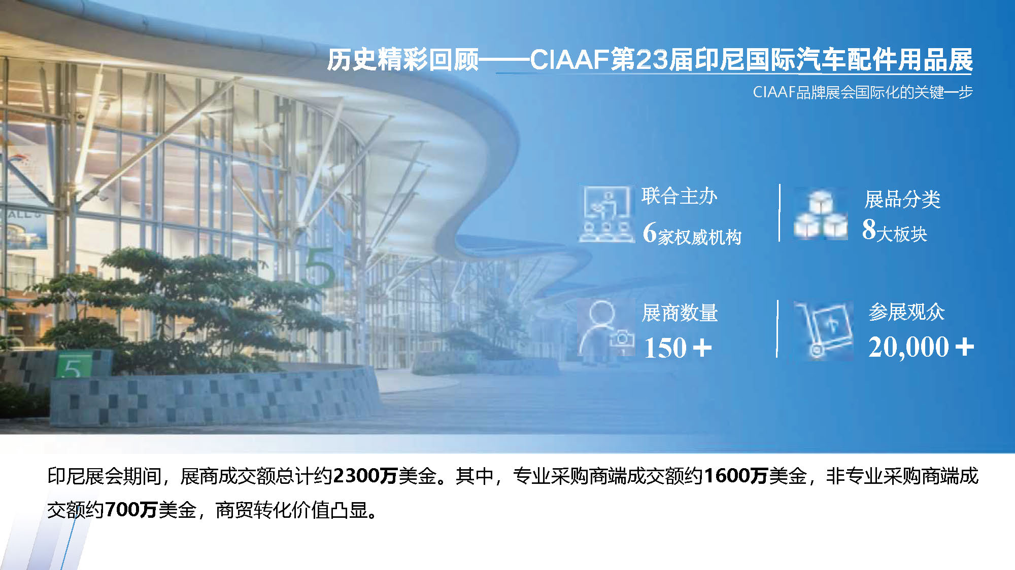 郑州汽车后市场博览会 (CIAAF)自2005年举办以来,每年定期于6月在郑州国举办,吸引超过3000多家汽车后市场企业参展,超过10万人次的海内外专业买家莅临展会,是一个基于实效的展览+会议+电商的全渠道实效型展览平台。刚过去的第22届郑州国际汽车后市场博览会,展区规模再度扩展,展会3天观众100,000人次,展会设置20余场高峰论坛,还有汽车改装,音响改装等巅峰赛事,与泰国,越南等国家,以及非洲中东等地区建立合作关系。