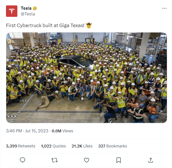 Focus近日,特斯拉官方推特账号发布推文,宣布首辆 Cybertruck 皮卡已经在美国得州超级工厂下线。特斯拉官方还晒出了图片,画面显示诸多得州超级工厂员工围绕着首辆 Cybertruck在庆祝。