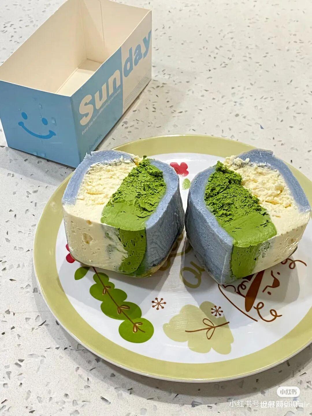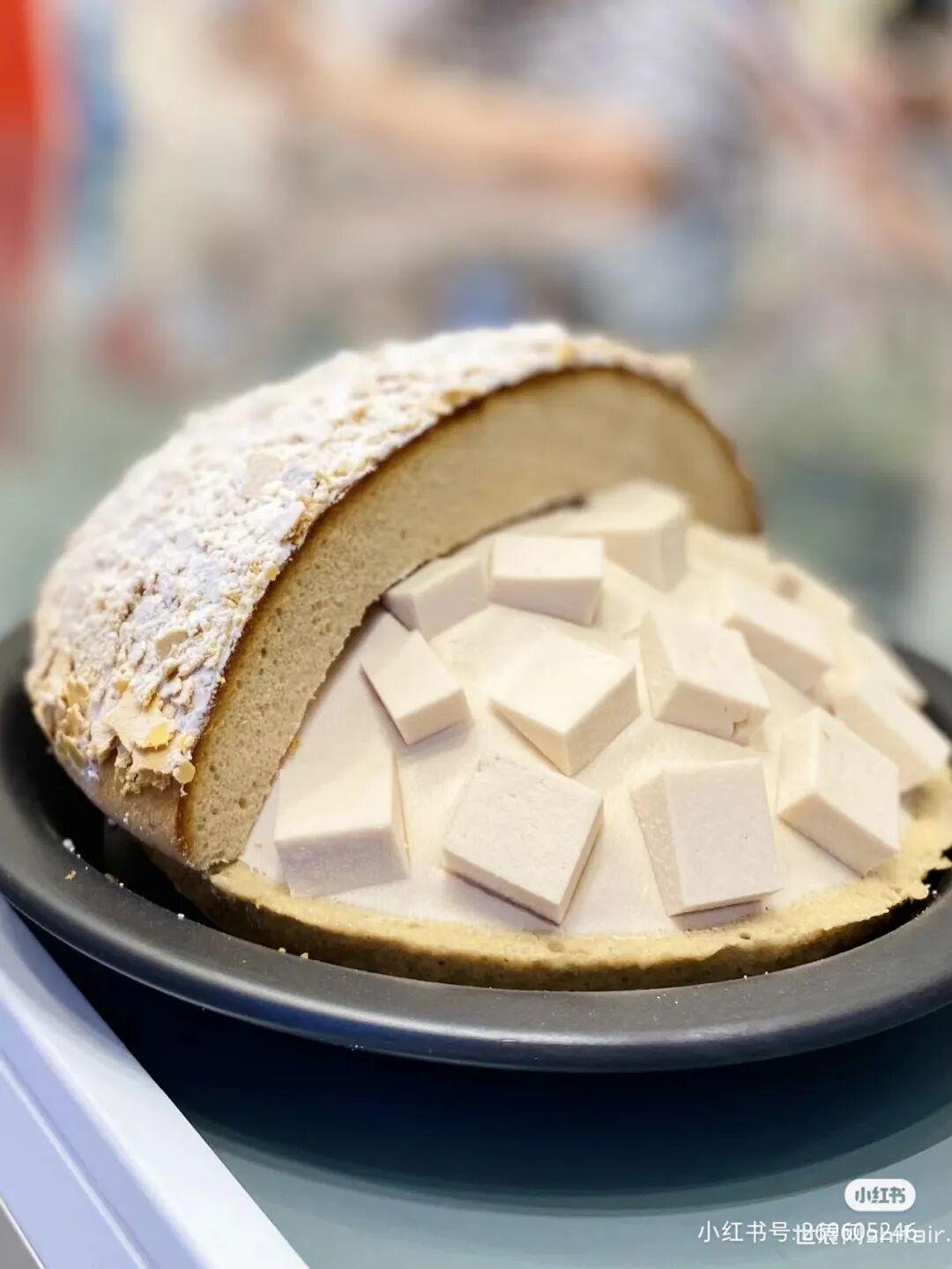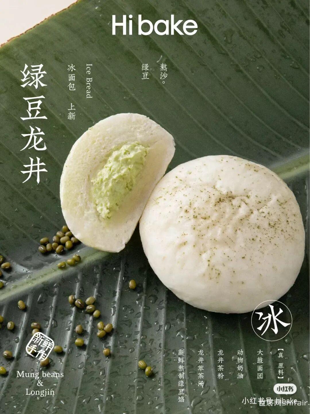 (小红书@Hibake)一款绿豆內馅冰面包。