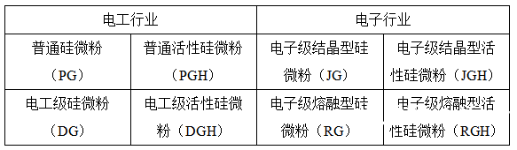 硅微粉产品系列比较复杂,应用十分广泛。根据国标SJ/T10675-2002,硅微粉可作以下分类[2]:
