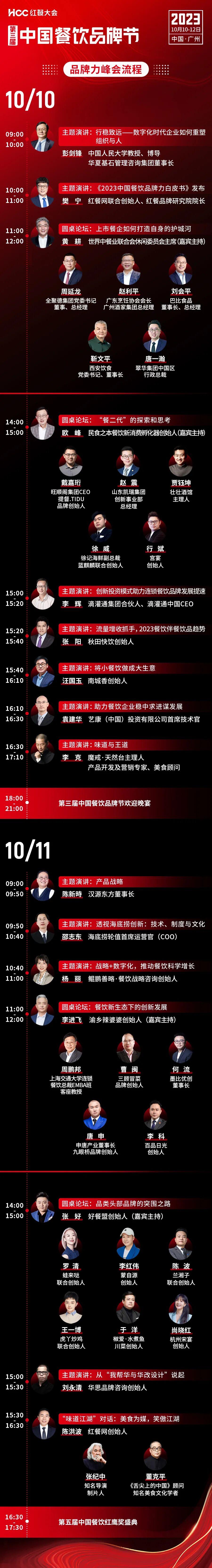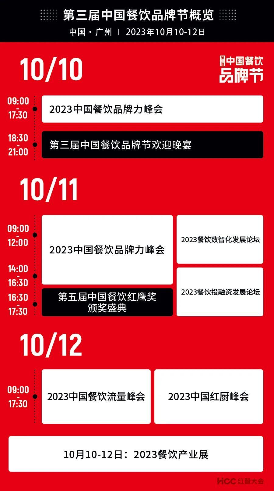 指导单位:广州市商务局主办单位:世界中餐业联合会、央广网、红餐网承办单位:红餐品牌研究院、央广网餐饮频道活动时间:2023年10月10-12日活动地点:广州南丰朗豪酒店峰会亮点