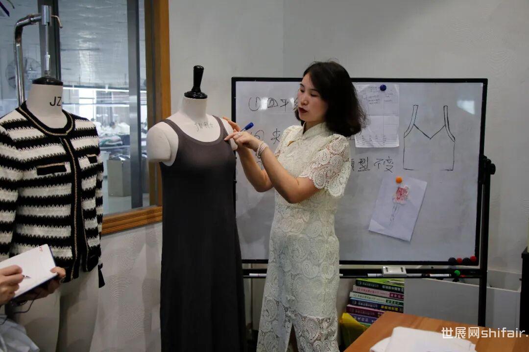 眼前这位是东莞市芙发服饰有限公司的设计师欧阳超梅,一早,她便来到办公室与工作人员进行工作对接,将样衣需要修改的地方逐一告知。而工人们也按照设计师的意见对样衣进行修改,各个生产车间机器轰鸣,设计、生产流水线高速运转,开足马力,抓紧赶制订单。
