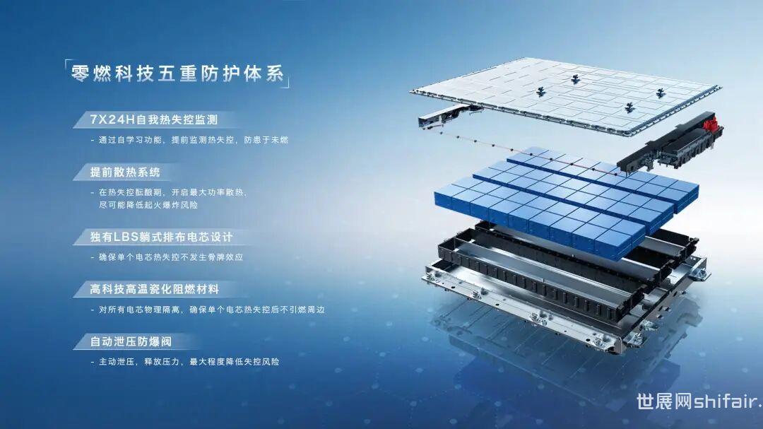 04华为-“巨鲸”电池在 2023 年 12 月,华为问界 M9 的发布引发了广泛关注。这款车型在电池安全方面的设计尤为出色。它采用了五层热安全防护设计,包括耐高温云母板、绝缘云母纸、航空级隔热气凝胶、纳米级陶瓷绝热层和超薄液冷降温系统。这些技术确保了电池在整个生命周期内的热电安全,有效防止热失控的发生。全高压热失控不蔓延技术,碰撞场景时,高压闪断保险开关极速切断,11 个防护腔体包裹,全面提升电池安全。