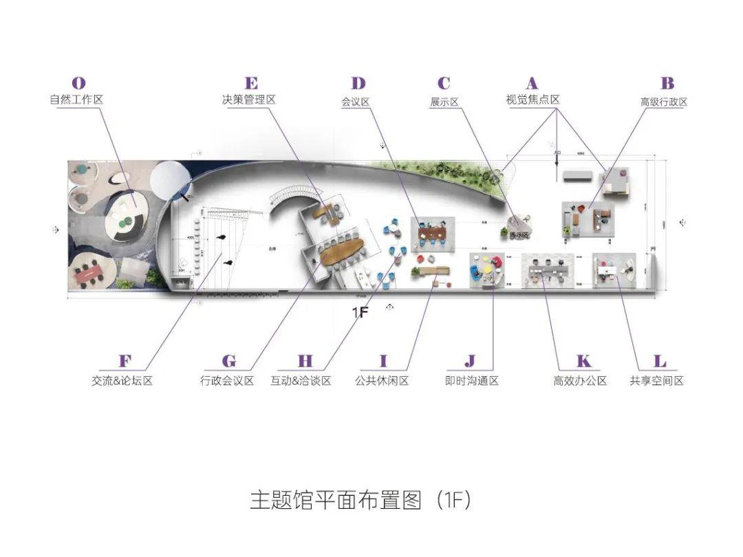 C 展示区展示区内具有高品质、独特设计和舒适性的产品,适用于不同场景的使用,并能够为办公或休闲空间增添时尚和品味,采用优质的材料和人体工程学设计,提供了舒适的坐姿支持和令人放松的使用体验,让人能够尽情享受休憩时光。D 会议区高级会议室的发展趋势将更加注重智能化、多功能性和可持续性。以提升会议体验和效率。会议室将不仅仅是商务会议的场所,还可以用于教育培训、社交活动和创新合作。在设计中,会议室将与人工智能、物联网和大数据等技术共生进化,不断适应用户需求和新技术发展,实现更加智能化、灵活化和可持续化的发展。E 决策管理区决策者办公室家具布局和空间规划的趋势是注重个性化、多功能性和智能化。根据决策者的工作习惯和需求进行个性化设计,以提升工作效率和舒适度。采用了镜面金属材质作为结构凸显管理架构的重要性,同时与实木工艺的结合使得家具要具备多功能性,满足决策者在不同场景下的工作需求。增加的智能化家具和设备的应用也是当前的趋势,可以提升决策者的工作效率和体验。F 交流 & 论坛区交流&论坛区是主题馆内的重要组成部分,采用阶梯的方式进行室内搭建,为主题馆的观展者提供了一个自由、开放的平台,以促进了主题交流和办公合作,同时将协作与互动的形式通过休闲座椅及白板进行组合体现,为主题馆各种不同的主题和活动提供了平台和空间。G 行政会议区采用弧形会议桌与 I WILL 灵动墙组合行政会议空间,可以柔化行政氛围,并营造出和谐的交流氛围,有利于与会者意见的统一。行政会议区可将现代信息技术模块集成在会议桌中,为高效会议提供支持,倡导更有效的会议决策精神。H 互动 & 洽谈区互动&洽谈区的核心在于支持办公关系的协作,通过休闲桌椅配置的即兴或非正式互动可以支持协作。从持续办公到创造力设计,吧台为该区域提供了必要的协作支持,这有助于创造一个独特的体验和和适合多样化办公行为的空间环境,使得人与人之间的联系、信息之间的传递、快速反应的效率以及创新潜力的发挥都会得到最好的实现。I 公共休闲区公共休闲区采用了单元模块设计的休闲沙发,让使用者感到舒适,同时在日常生活或工作活动中得到有效的工作支持。双向的乘坐配置模糊了区域的界限,以期创建更灵动洽谈空间的思路,使洽谈的模式更加多元,提升交流的效率J 即时沟通区即时沟通区域的设计哲学是以开放式设计为基础,兼顾多功能性、舒适性、技术支持和隐私保护,以提升员工的沟通效率和工作体验。轻盈的沙发设计及布墩可以进行任意形式的切换与组合,以适应即时性的办公或沟通需求。I WILL 灵动墙的接入确保在该区域可以形成私密或开放组合样式,并搭载书写白板、陈设架,以及可接入电视机等职能设备的功能,完全满足办公环境中对于社交多样化的需求。K 高效办公区重新思考办公空间的规划和办公体验,采用符合环保、自然质朴特性的材料打造产品,亲肤质感让人忽略面板的坚硬与冰冷,为办公带来温情;桌上屏风采用储物格,收纳文件及工具,营造整洁舒适的工作氛围;独特设计的人体工学椅为健康办公提供支撑。L 共享空间区共享办公区域采用 I WILL 灵动墙、吧桌以及 OPAL 沙发的组合来满足混合工作的快节奏、高频变化,并保留未来工作形式进化的可能性;高低搭配的样式确保在任何时候都可以迎合社交、交流以及工作需要,创建不同的交流和协作及工作模式,并搭配色彩丰富的面料,让空间更具有活力。