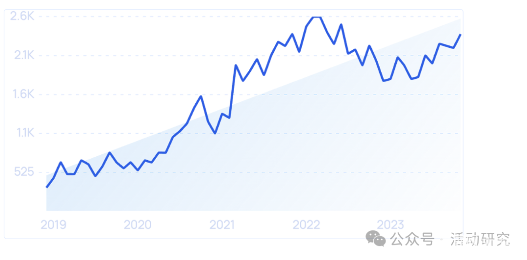 不过,这篇文章的确分析得不错,而且总体比较符合当下中国会展和活动行业的情况。我们可以结合作者的观点,进行有选择性地吸收。另外,可能是因为发表略早的原因,文章对人工智能特别是ChatGPT、Sora等讨论得明显不够。混合活动持续增长随着搜索“混合活动”的增加以及虚拟活动的兴起,未来的活动将更可能采用混合模式。这种模式结合了虚拟活动的灵活性和现场活动的互动性,使得活动组织者能够更容易地创建和规划混合活动。