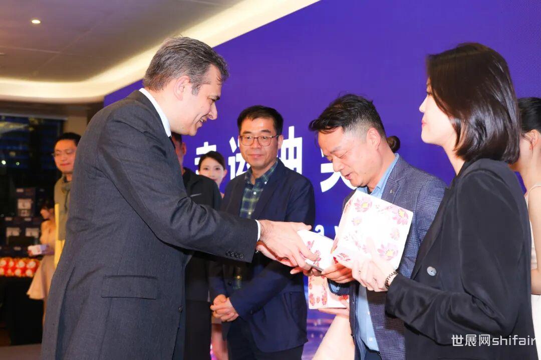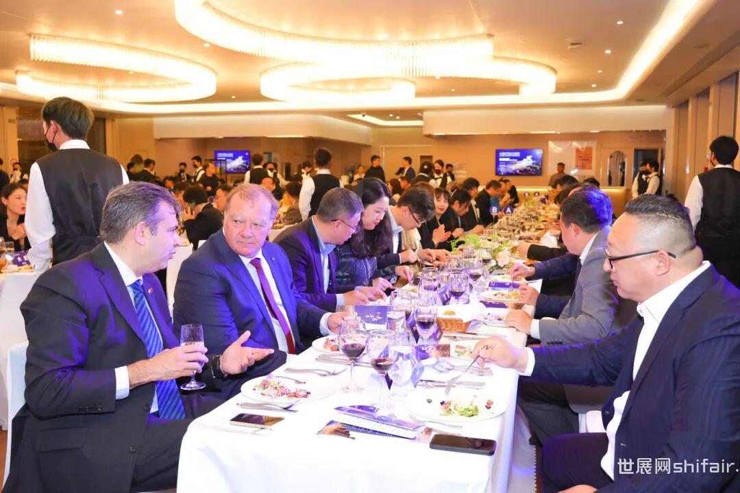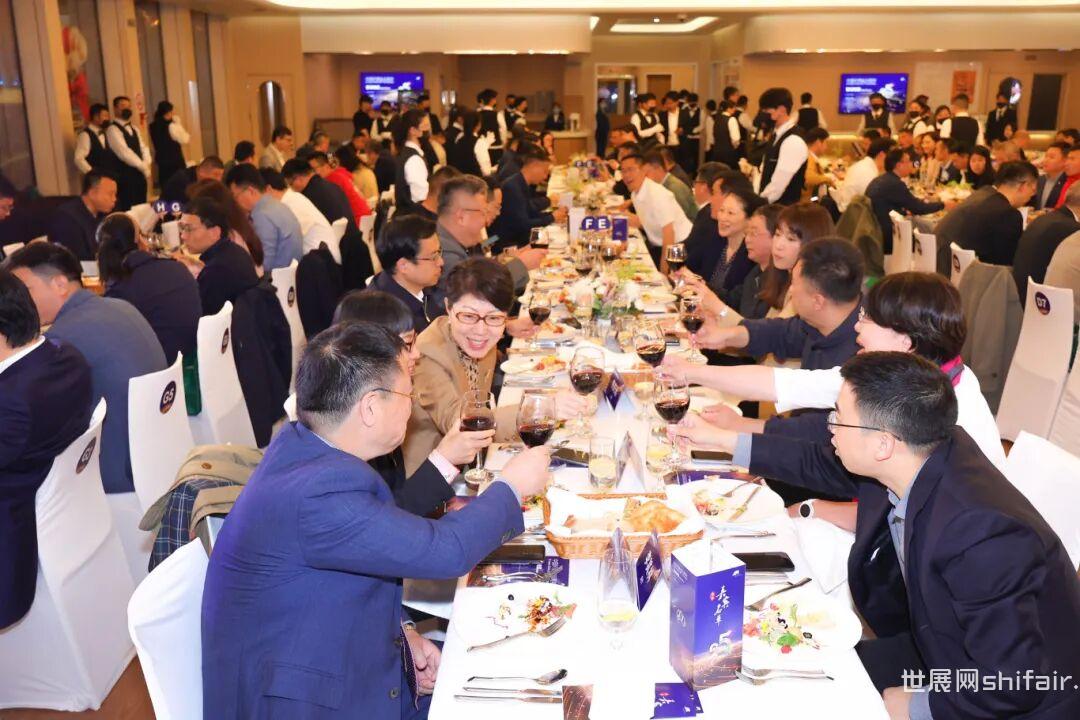 晚宴共有180位连续5年参展的展商代表和合作伙伴代表赴宴,在欣赏黄浦江两岸流光溢彩的美景和享用精致美食的同时,还获得了产业间互联互通的珍贵社交机会,共叙友谊、共谋发展、共话未来。▼晚宴现场