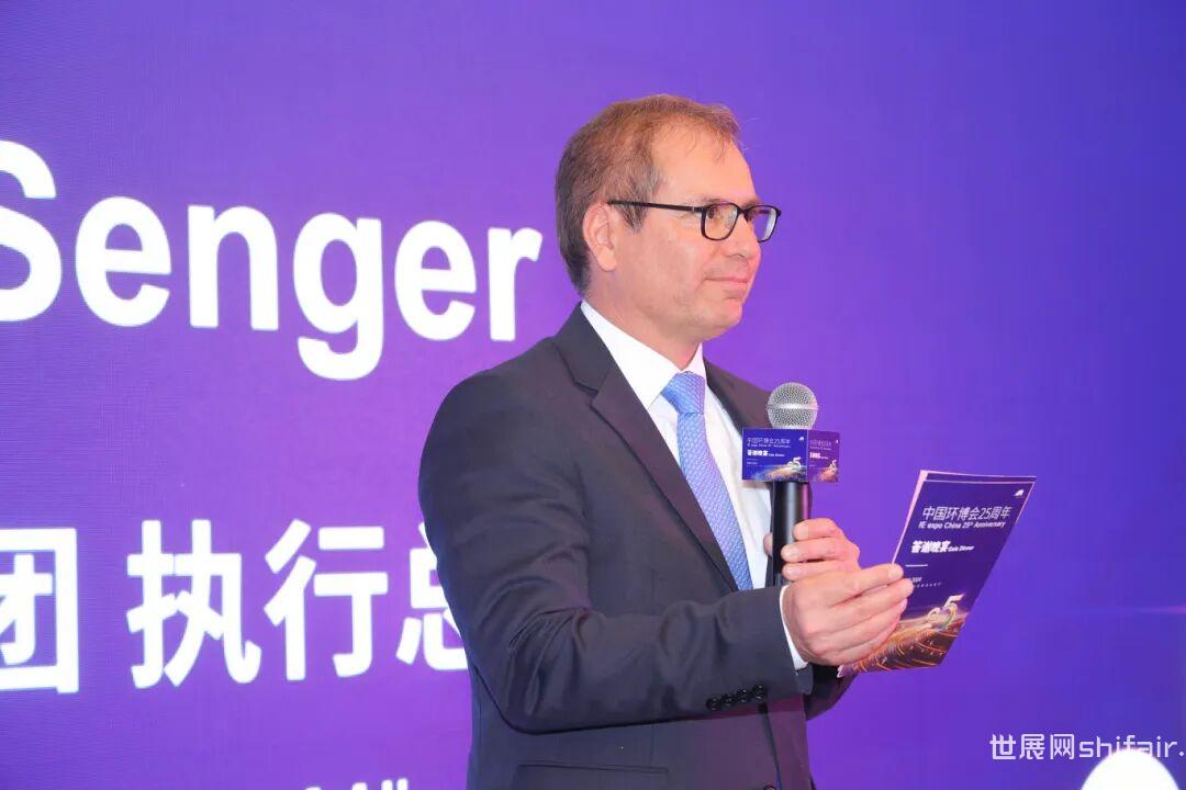 活动上,慕尼黑博览集团管理层成员Mr. Falk Senger回顾了中国环博会的成长历程,并向在场嘉宾表示欢迎和感谢,“您的长期参与和坚定支持,对于中国环博会的成功发展具有不可估量的重要性。因此,我们衷心感谢每一位为此重要里程碑贡献智慧和力量的人士。”▼Mr. Falk Senger致辞