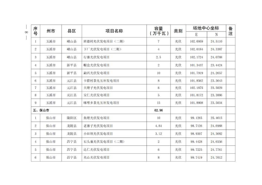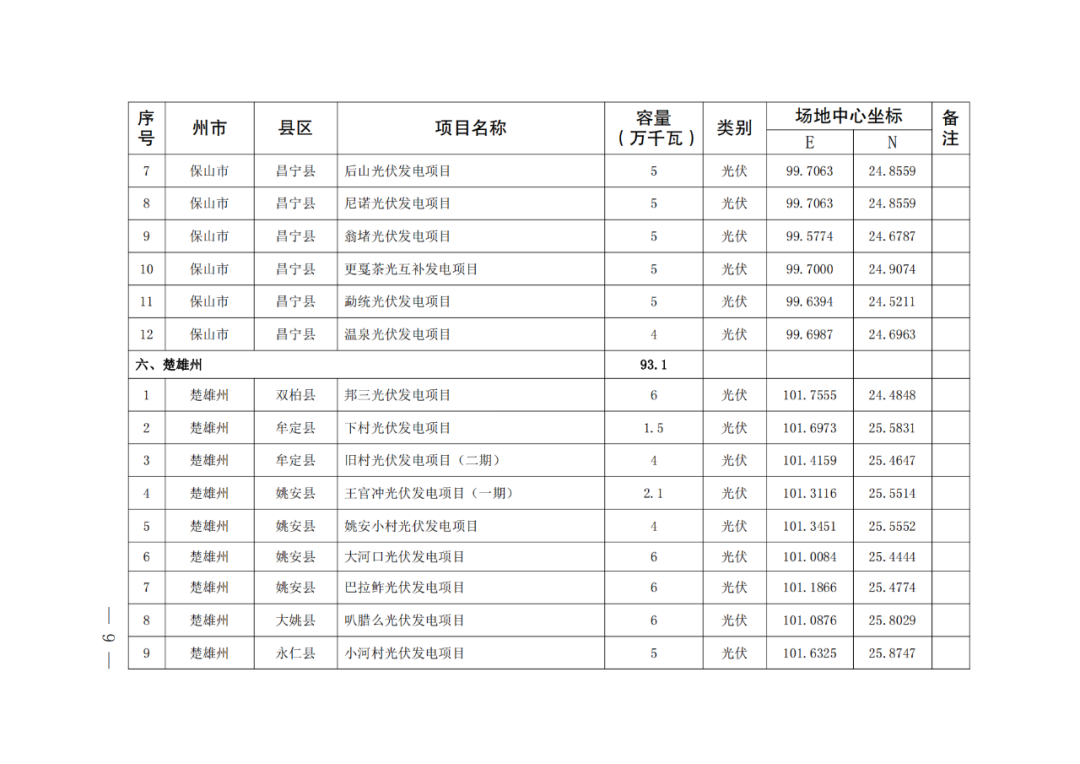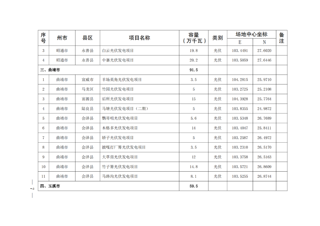 通知表示,纳入云南省2024年第一批新能源项目开发建设方案实施的项目共141个,装机1018.325万千瓦。其中,风电项目共3个,总规模119.65MW,光伏项目138个,规模为10063.6MW。
