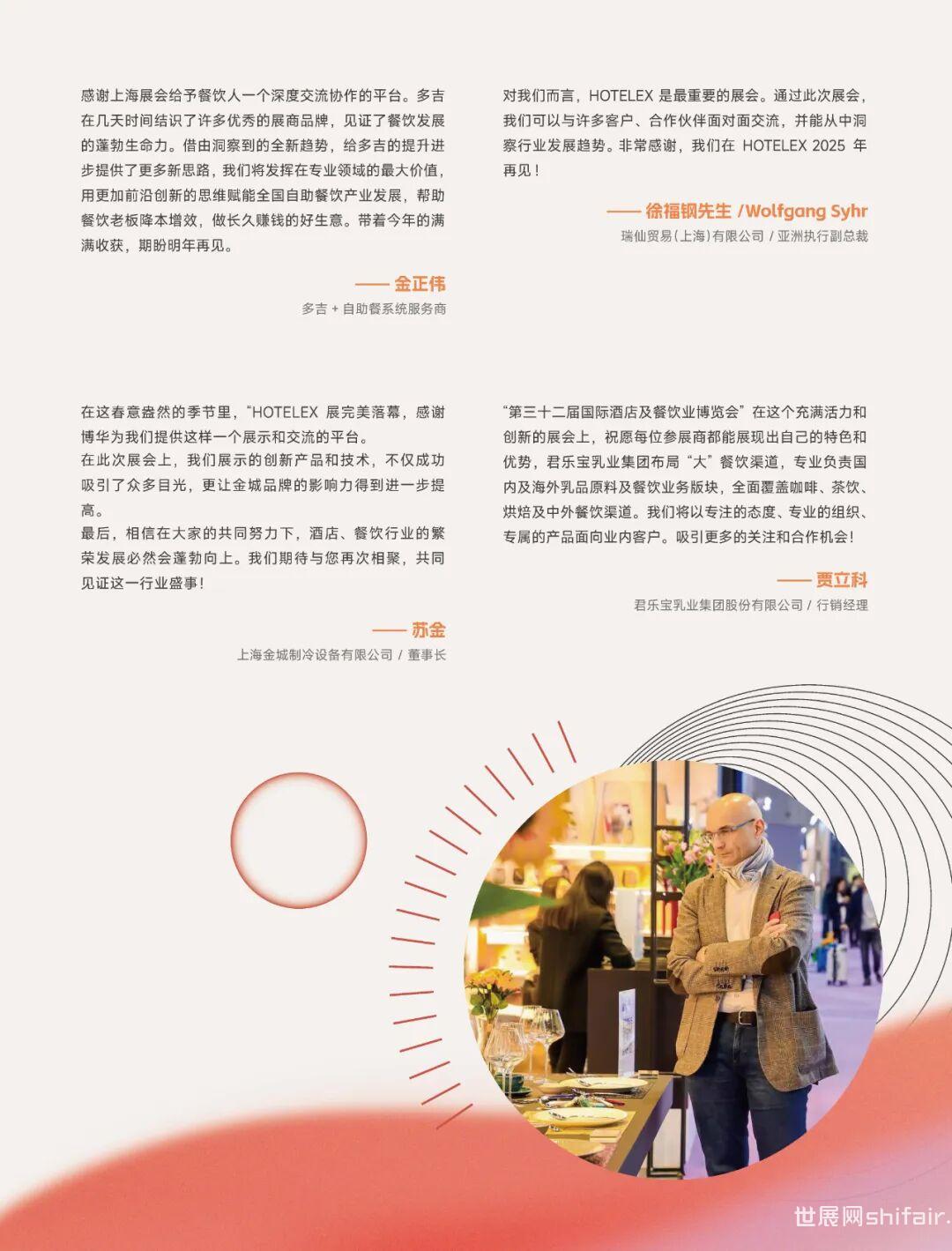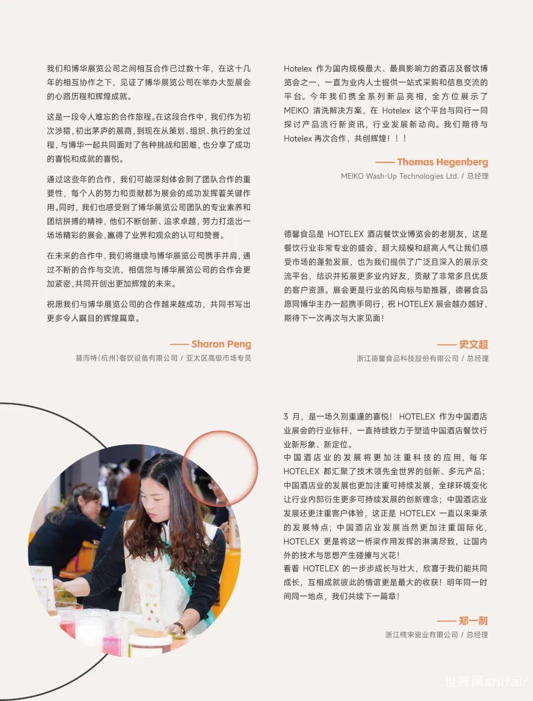 今年的上海展,我们看到了勃勃发展的行业生态,见证了酒店餐饮行业的复苏。百尺竿头,更进一步。上海博华将发扬30年来的成功经验,继续深耕行业,携手多年来的伙伴与业内同仁,打造更宽广的酒店餐饮产业生态圈。2025年3月30日-4月2日,2025上海国际酒店及餐饮业博览会将于上海·浦西虹桥@国家会展中心召开。我们将继续集聚行业的力量,以餐饮全产业链的优势,为餐企提供决策依据和对接渠道,为行业的发展指明前进方向。欢迎您与我们一起,共同探索行业发展的方向!