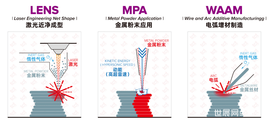 此外,另一种金属3D打印主流技术——定向能量沉积(DED),这是一种更为复杂的3D打印工艺,通常用于修复现有部件或为其添加额外材料。使用该技术完全可以从零开始制造部件,但它通常用于工业应用,如修复损坏的涡轮叶片或螺旋桨。定向能沉积技术使用激光或电子束等聚焦能源来熔化材料。不过,材料在被喷嘴沉积的同时也被熔化了。在某种程度上,该技术处于材料挤压和粉末床熔融的前沿。这项技术通常还有其他名称,如激光近净成型(LENS)、金属粉末应用(MPA)、电弧增材制造(WAAM)等。