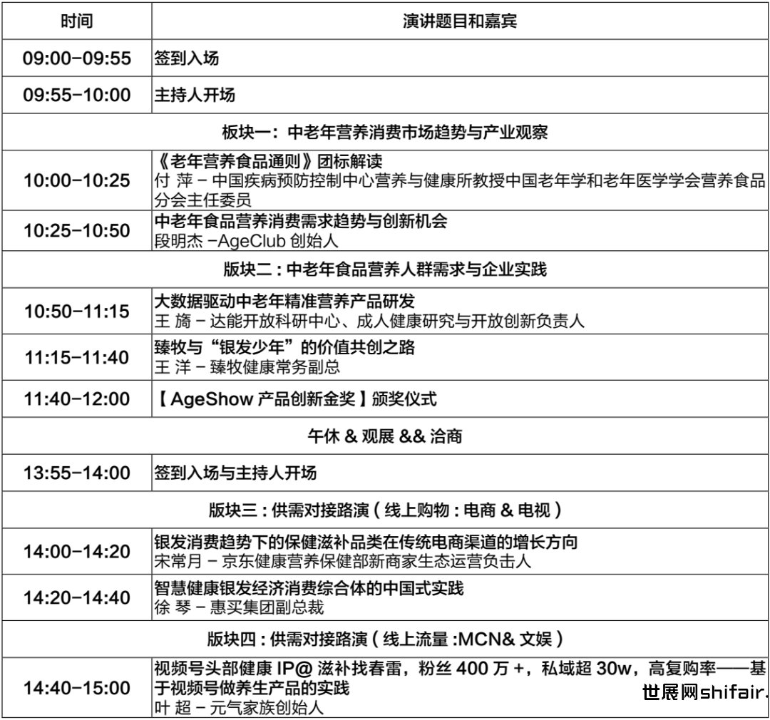 第三届中老年食品营养创新发展论坛论坛时间:5月16日09:30-17:00论坛地点:上海·国家会展中心6.2馆现场会议室主办单位:国药励展、Age Club