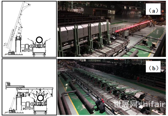 在过去的40年里,许多关于钢材的研究、开发和生产实践证明,在线加速冷却工艺是提高热轧钢材力学性能的重要手段。[1~8]在线加速冷却设备广泛应用于厚板、带材、棒材、线材、H型钢和钢轨的生产,为微合金化技术和控轧控冷TMCP的应用提供了可能。[9~17]与上述产品不同,无缝钢管是中空结构产品,因此很难开发出能够同时对钢管内外表面进行冷却的设备。仅通过冷却钢管的外表面,很难获得较大的温降来提高钢管的力学性能。介绍了一种新型无缝钢管在线加速冷却装置及其应用试验。该设备安装在中国某公司的Φ460mm无缝钢管厂,可对无缝钢管内外表面同时进行冷却。设计者将其命名为钢管内外加速冷却系统,简称ACIOS。2. 在线加速冷却系统