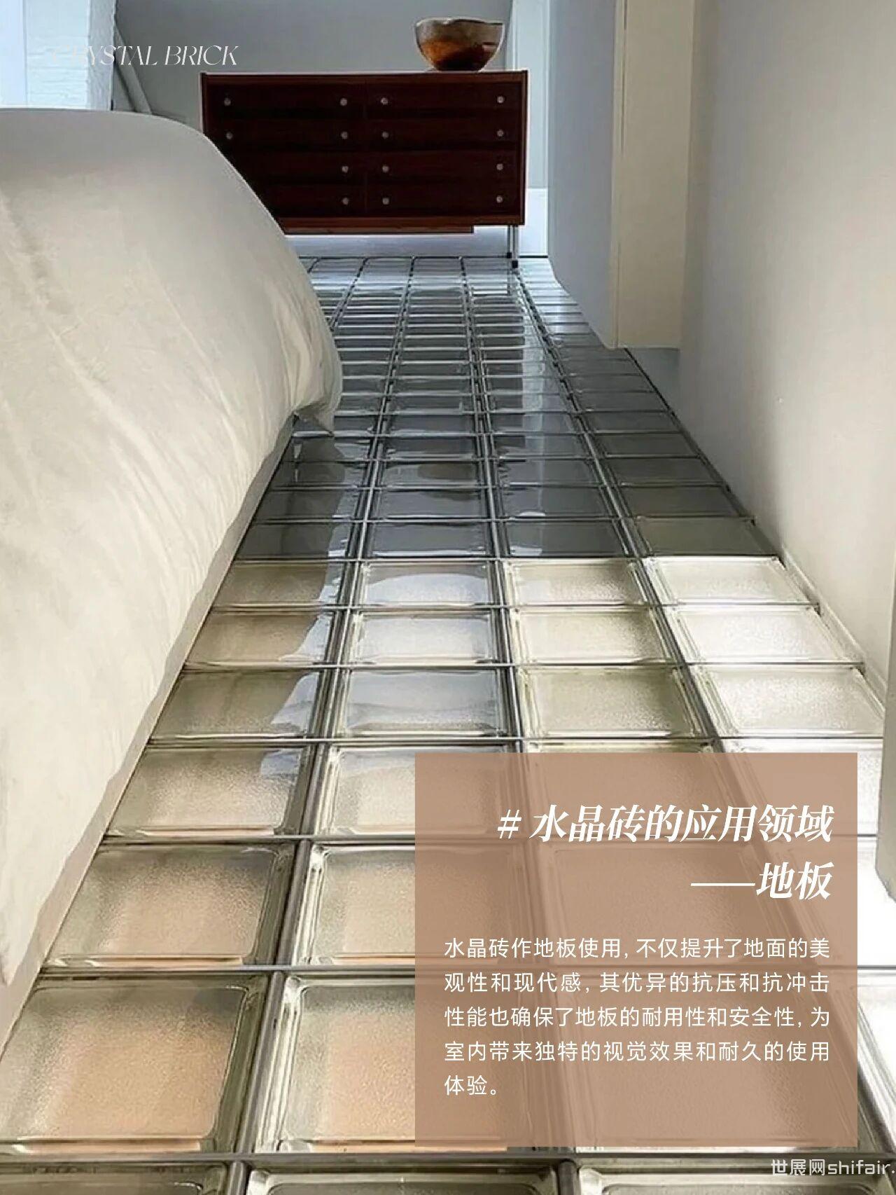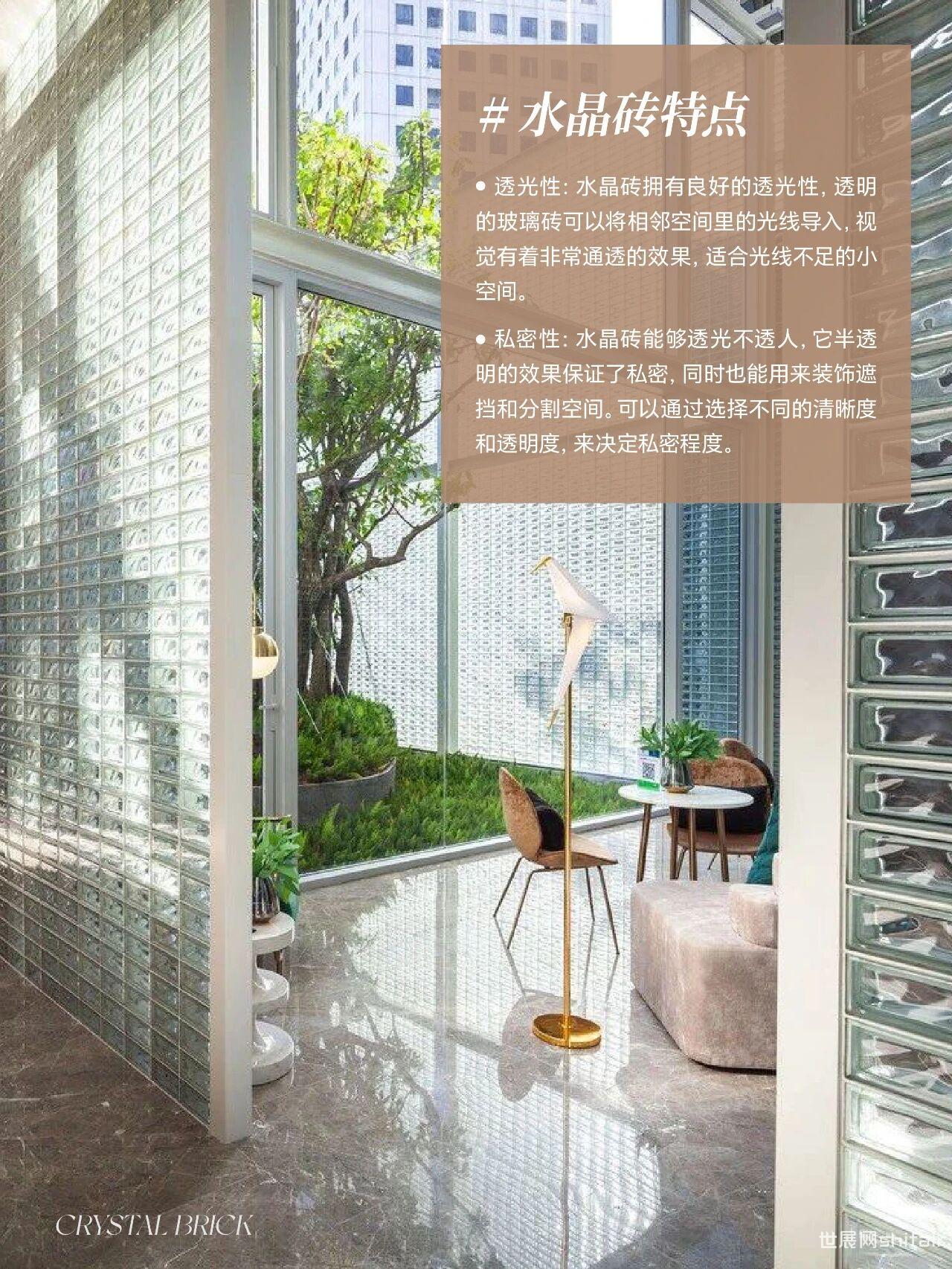 水晶砖,透光而不透视的现代材料,将自然光线引入室内的同时保持私密,成为现代建筑和室内设计中不可或缺的元素。 【简介】水晶砖,一种具有高透光性和选择性透视性的玻璃砖,通过高温压制而成,结合现代工艺与传统玻璃的美感,为空间带来明亮而朦胧的效果,既保障光线的引入,又保持空间的隐私性。 【特性】水晶砖以其卓越的透光性、私密性和隔音性脱颖而出,适合光线不足的空间,同时具有装饰和分割空间的双重功能。其坚硬耐磨的特性保证了长久的使用寿命,且易于清洁维护。 【应用】水晶砖在客厅隔断、建筑外墙、室内墙体、地板等多种场合发挥其独特魅力,不仅提升空间的光线和视觉效果,还增加了现代感和艺术气氛,满足多样化的设计需求。 【优秀案例】混合院、钟书阁、“北”空间、Le Prisme 音乐厅等地的应用展示了水晶砖如何将光线、空间和艺术完美结合,创造出既实用又具有美感的环境。水晶砖,不仅仅是一种建筑材料,它是光与影的舞者,是现代设计与自然光线的桥梁。 探索水晶砖的无限可能,让我们一起创造更明亮、私密且充满艺术感的空间。