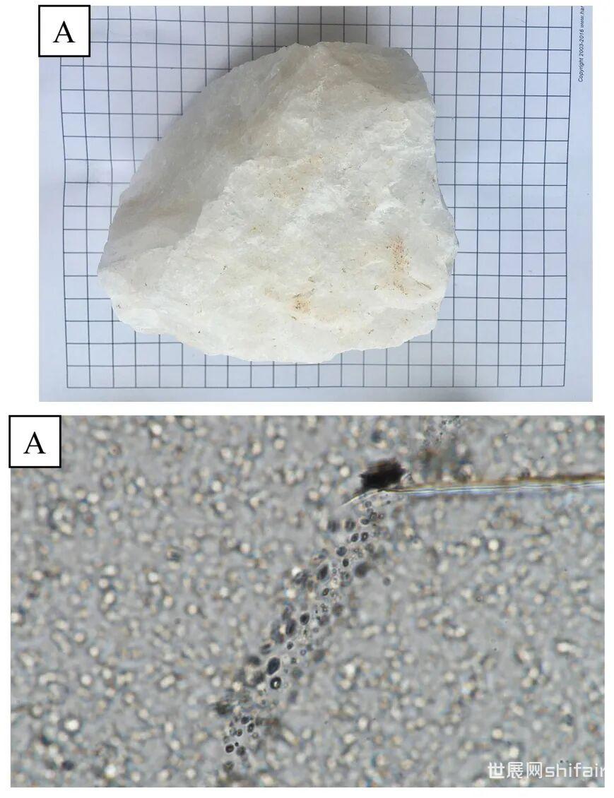 安徽霍邱群太古代绿岩晶体内部含较多流体包裹体,部分流体包裹体呈定向排列,流体包裹体内部为重烃+H2O及CO2+H2O。6、云南省大关县石英砂岩