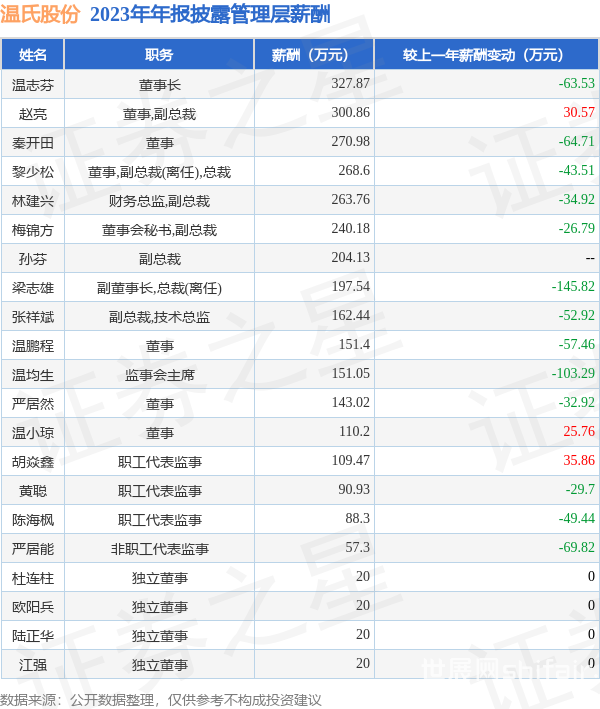 上市猪企董事长2023年年薪曝光,温志芬327.87万元居榜首,另有两位年薪为0