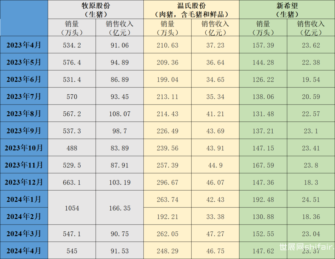 截至5月7日,三大上市猪企牧原股份()、新希望()、温氏股份()全部发布4月生猪销售简报。