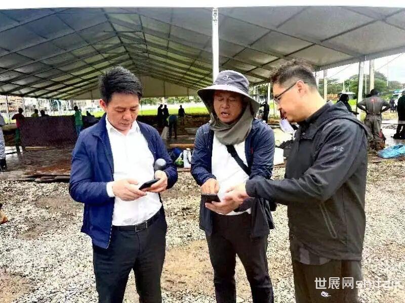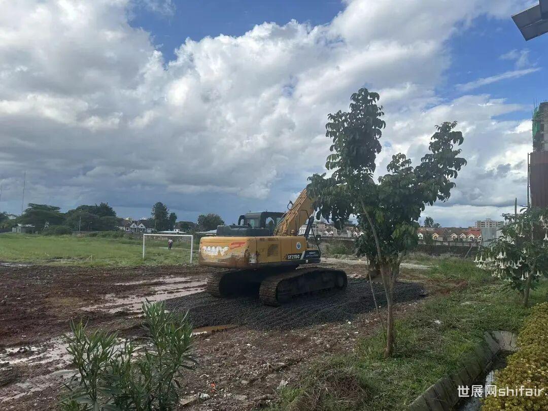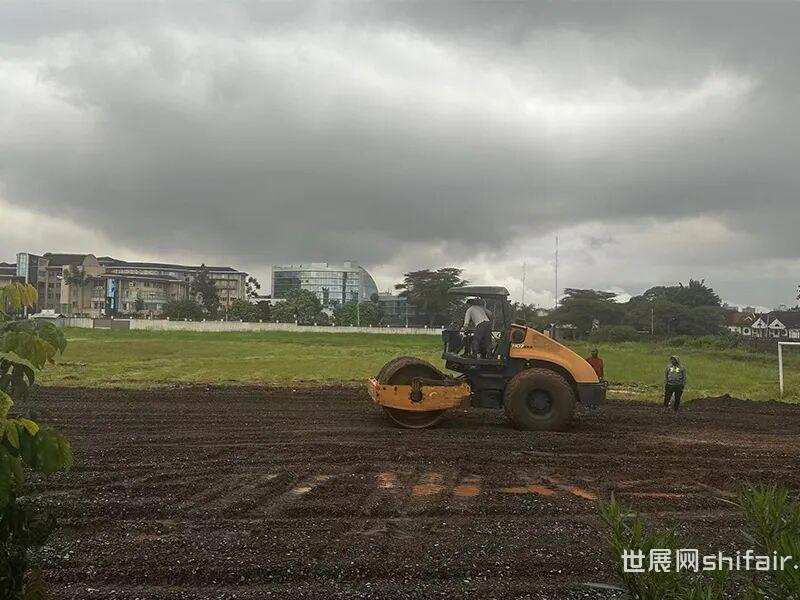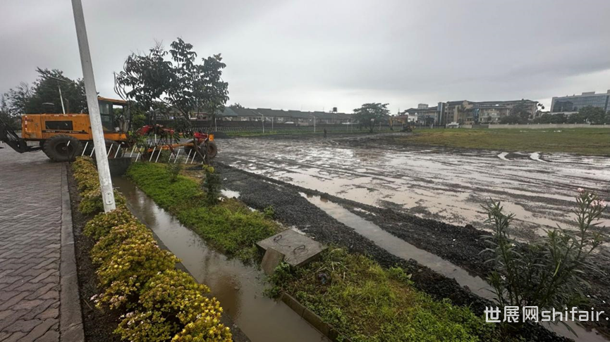筹备期间,工期、场地、天气三大难题的挑战给海外出展团队施加了极大的压力:搭建工期适逢肯尼亚暴雨灾害侵袭,洪水泥石流造成城市交通阻断,城市排水系统瘫痪,户外展区场地形成大面积积水,给施工增加了极大的难度。困难重重阻挡不了项目团队的坚定信心,再大的困难也被一一攻破。面对现场突发状况,执行团队多次组织召开现场协调会,展览场地方、施工方、搭建方联合调整方案,制定预案应对突发情况,确保施工进度按计划推进;现场压路机、挖掘机、平地机、装备推土机等各种机械工具不停歇作业,累计消耗土方、沙石建筑材料超1200余吨。