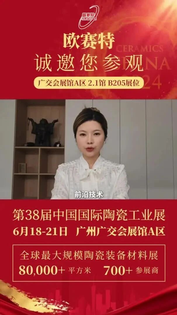 专注于陶瓷釉料生产及研发——欧赛特副总经理胡碧云 诚邀您参观#2024中国国际陶瓷工业展,6月18至21日,我们在广州#广交会展馆 A区 2.1馆 B205 展位 恭候您!