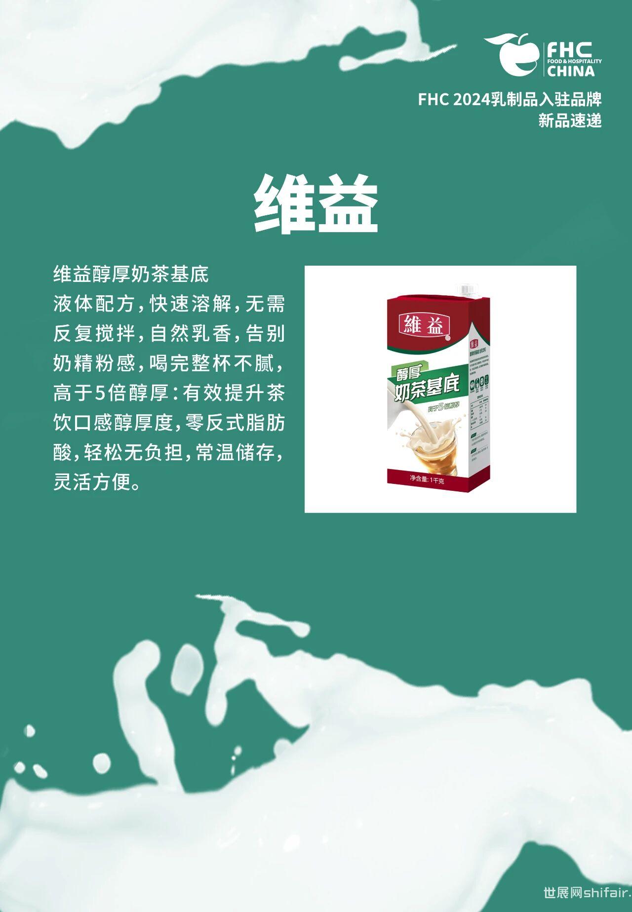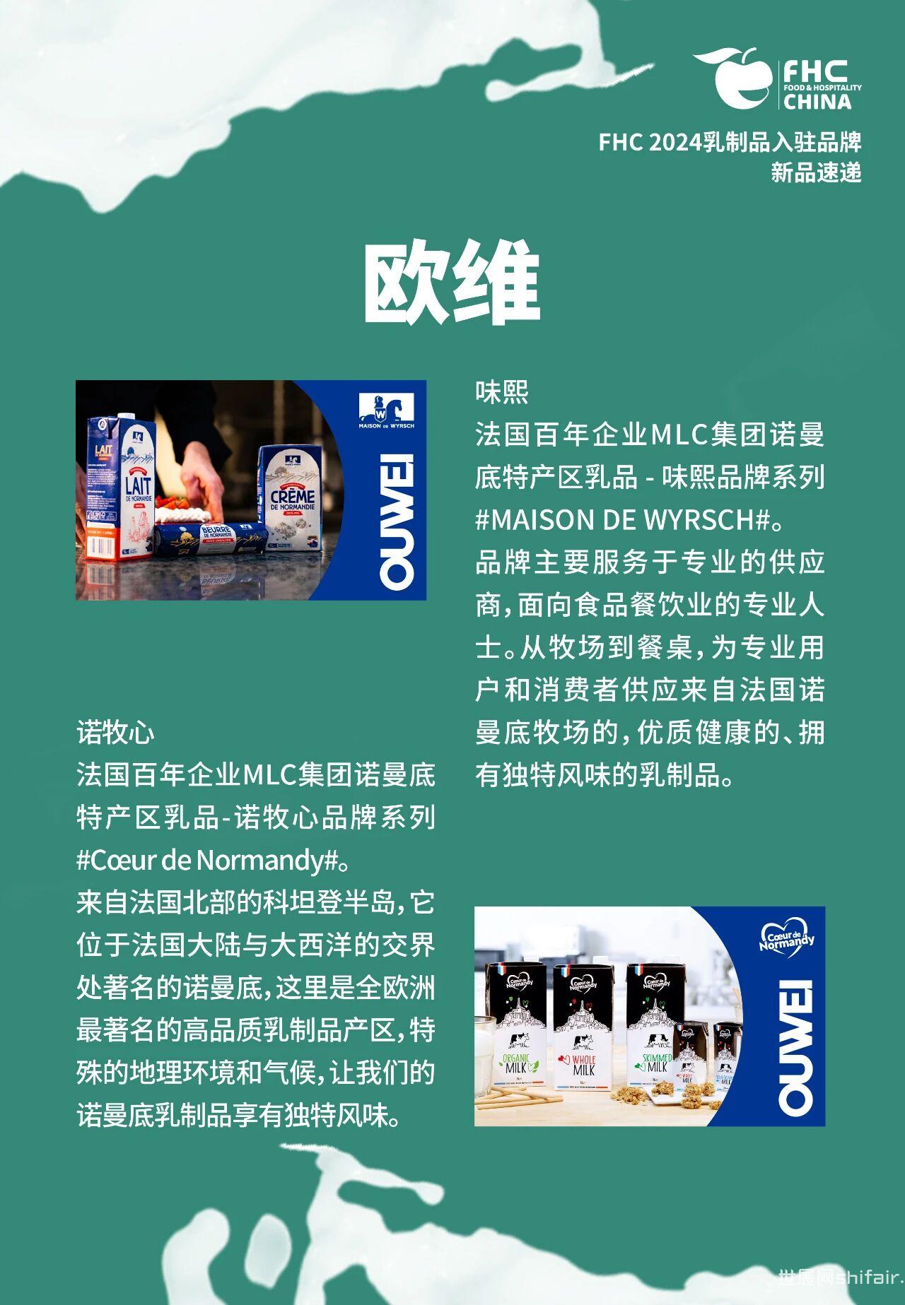 维益、圣牧、欧维、莱益塔、两点水等知名乳品品牌已确认入驻第二十七届FHC上海环球食品展,让我们共同期待更多品牌加入和精彩展示! 展会时间:2024年11月12-14日 展会地点:上海新国际博览中心 乳制品板块展出品类:· 动物乳品:牛奶、羊奶、骆驼奶等· 加工制成品:奶酪、芝士、炼乳、奶油等· 多样化品类:乳粉、奶片、奶糖、奶酒、奶茶等 国际化视野:汇聚全球食品饮料商贸资源,包含新西兰、澳大利亚、美国、法国、德国、泰国、日本等乳业密集国家及地区。 展会规模:20万平方米展出面积,50+参展国家和地区,3000+参展企业,触达17万+专业买家。FHC2023累计媒体曝光超1亿。 行业链接:100万行业数据库,覆盖商超、零售、餐饮、咖啡茶饮、烘焙、商旅文娱等领域。 高峰论坛:与名企面对面,邀请行业领袖、学者分享前沿洞见。 国际精品赛事:烹饪、烘焙、咖啡、潮饮等热门领域赛事,汇聚行业精英,开发品类新应用。 相约FHC2024,共同见证乳品行业的繁荣与创新!扫描或识别图中二维码,快捷预订展位&领取观展门票!展位咨询:Owen Hong 洪先生TEL:(86)E-mail: Owen.展位咨询:Flora Tao 陶女士TEL:(86)E-mail: Flora.