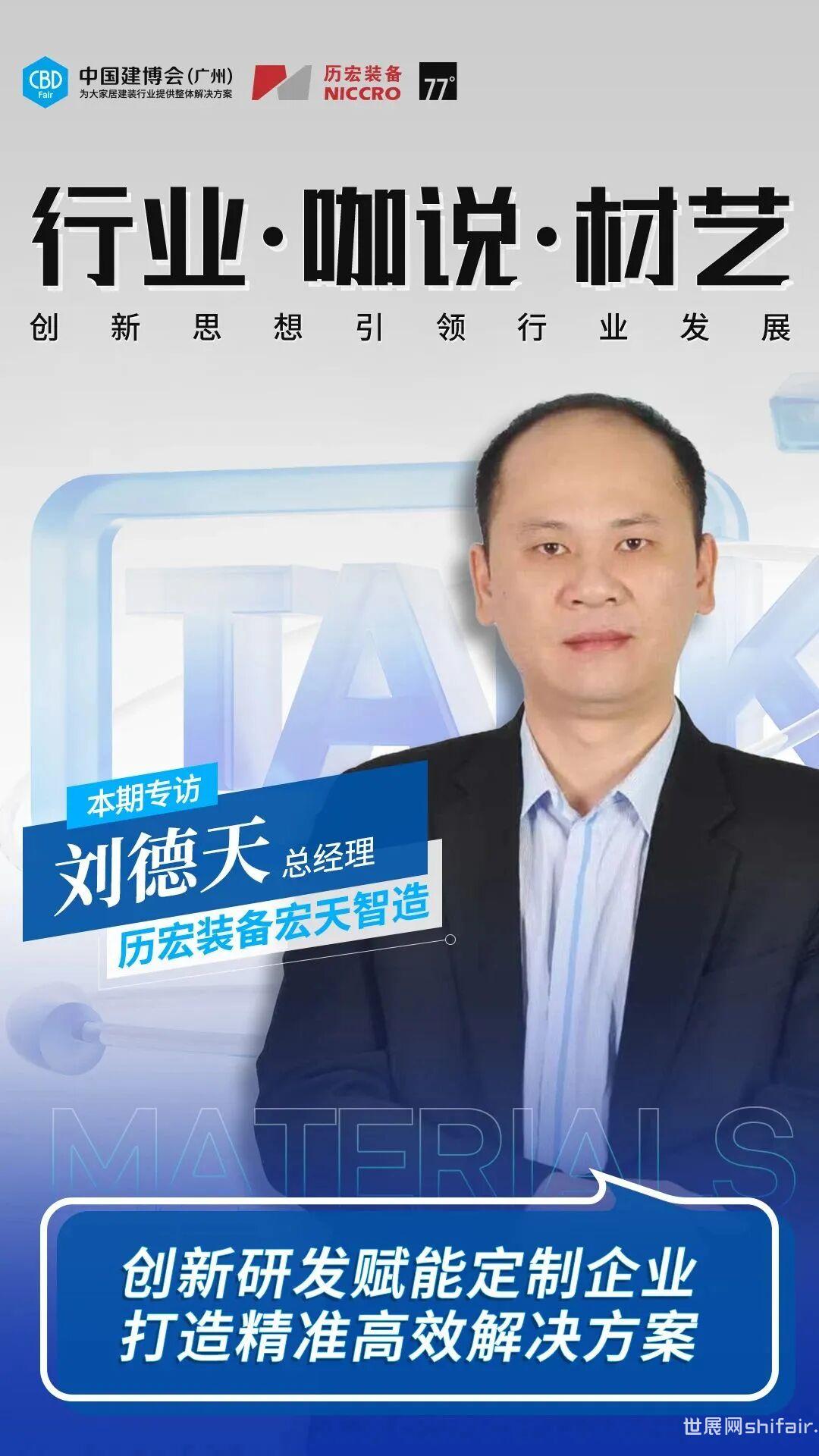 机械设备作为“国之重器”,是制造业的根基,而数控机械更是高端装备智能制造的心脏,其技术水准直接映射出一个国家的工业发展水平。面对高端装备快速发展的迫切需求,以木工机械为代表的细分行业正勇立潮头,开辟新径,打造国产高端装备生产线,实现“弯道超车”的行业里程碑,为我国制造业的高质量发展贡献力量。作为大家居建装行业全球第一展,中国建博会(广州)与国家政策导向、行业变革趋势、企业成长需求保持高度同步,汇集展会独有资源优势,引领行业打造崭新发展格局。为此,中国建博会(广州)发起「行业·咖说」系列专访,紧跟大家居建装行业产业升级风向,洞悉定制领域装备制造新趋势。本期「行业·咖说」专访联合77°全球先锋家居媒体对话历宏装备宏天智造总经理刘德天先生,共同探索木工机械装备的创新路径与未来发展前景。