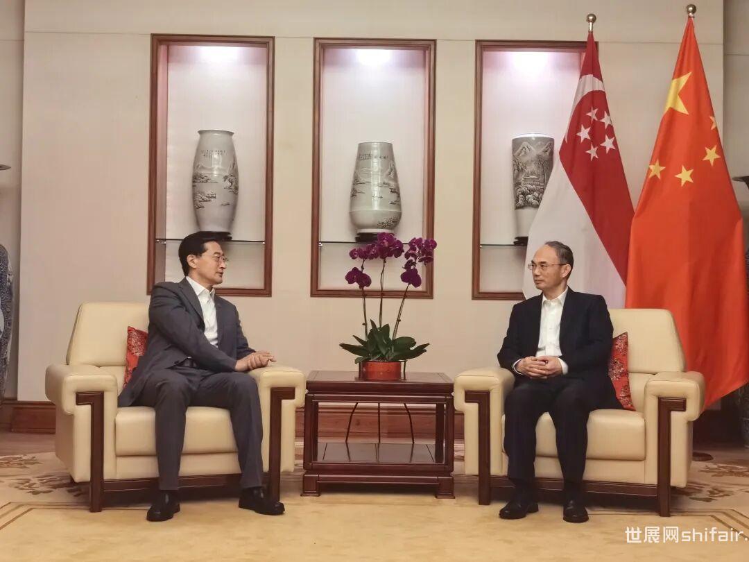 2024年5月24日,曹忠明大使会见来新加坡访问的北京航空航天大学校长王云鹏一行。韩骏公参陪同会见。