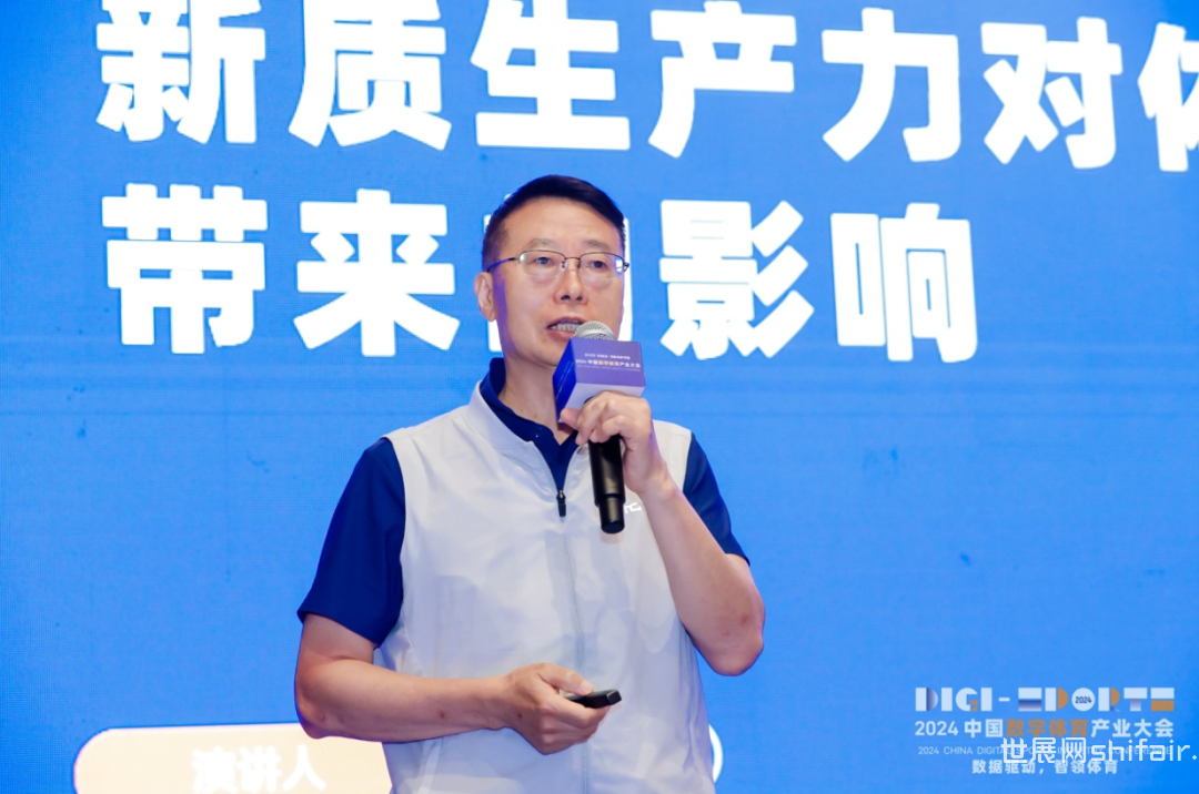 原国家体育总局经济司刘扶民司长就《新质生产力带给体育的产业变化》做主旨演讲。他从宏观角度探讨了新的生产力对体育产业的影响,认为新的生产力是技术取得革命性突破,生产要素科学配置,产业深度转型升级。新的生产力对体育产业带来新挑战,如劳动者劳动资料、劳动对象和劳动关系的变化。他提出了关于推动更高水平的生产力要素协同配合的建议,包括扩大赛事流量、吸引更多游客参与、构建统一的大市场等。