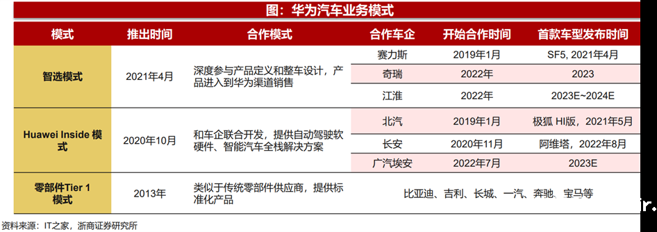 华为在汽车业务上采取了多种合作模式,以适应不同车企的需求和市场变化。