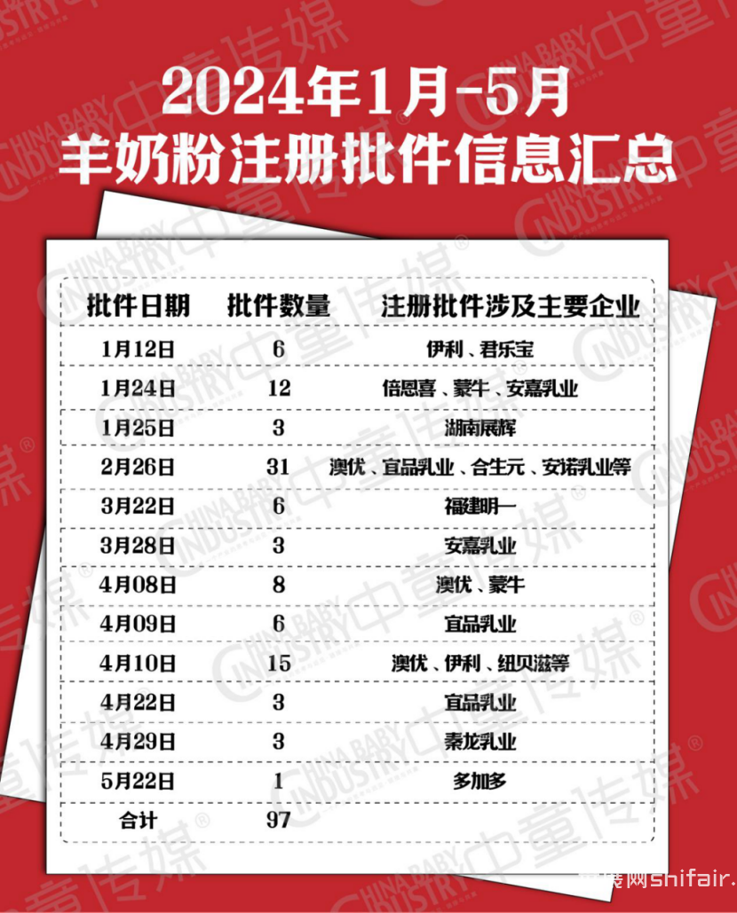 文丨中童传媒记者 原野2024年上半年,羊奶粉配方注册猛然提速。中童研究院数据统计显示,截至2024年5月31日,婴配羊奶粉目前共有46家企业119个羊奶粉系列过注新国标,总占比30.5%(婴配粉配方系列过注新国标总数有390个)。30.5%,这个占比已经不低了,因为婴配羊奶粉现在实际的销售占比只有十几个点,可达不到这个比例。而中童研究院对2024年1月至5月的统计分析显示,开年来这5个月共过审了218款婴配粉,其中羊奶粉过了16家企业29个系列97款产品(剔除重复出现的品牌为84款),在批件总数中的占比约45%,剔除重复品牌(牛羊注册批件中都有重复品牌),占比接近50%,与羊奶粉整体30%的占比相比,高出约66.7%。要知道,如今的婴配粉过审门槛越来越高,配方注册难度高、流程严谨且要求严格,甚至需要验厂,成本一下子就飙升了不少,考验的是企业的整体实力和决心信心。不少原来还想闯关的厂家一看这个势头,主动就退出申报了。如今在过审和申报的厂家中,这么高的占比都投给了羊奶粉,足见各品牌对羊奶粉的高度重视和投入。一方面,羊奶粉以高营养价值、易消化吸收和低过敏性等特点受到越来越多消费者的青睐,羊奶粉市场呈现阶段性持续增长,产品向多元化、高品质趋势发展。另一方面,牛奶粉的品牌集中度已经相当高,品牌格局基本不可逆,后来者要杀入第一二梯队,成本收益越发不成比例。而羊奶粉这样的细分赛道,还远远没有定型,大中小品牌基本上都在同一个起跑线上,谁都有机会。因此,从7年前中童传媒专门开辟出【中国羊奶大会】以来,中童传媒推动羊奶在中国的发展,切实地得到了企业界的热烈呼应,已经涌现出佳贝艾特、蓓康僖这样的头部品牌,其发展效应震动了业界。但任何事物的发展都不是一帆风顺的,总是螺旋上升,羊奶行业这两年发展的并不顺利:2022年下半年到2024年年初,将近两年的时间,羊奶在整个奶粉大类中的存在感明显低于2018-2021这五年。这两年期间,羊奶价盘持续动荡,二注过审的不确定性笼罩着相当一部分品牌,纯羊成为标配、半羊退出市场。同期,牛奶粉的竞争更加激烈,头部品牌精力更多地倾注于牛奶粉,无论是资源投入还是终端动销,都影响着渠道重心落于牛奶粉,羊奶的市场关注度下降。2024年,这一局面将会逆转!从今年开年来的配方过审中不难看出,无论是头部乳企还是老牌羊乳企业,都对羊奶粉赛道给予了高度重视。