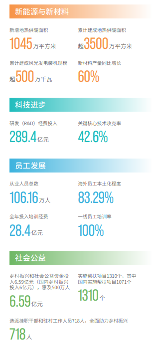 在新能源与新材料方面,中国石油新增地热供暖面积1045万平方米,累计建成地热供暖面积超3500万平方米,累计建成风光发电装机规模超500万千瓦,新材料产量同比增长60%。