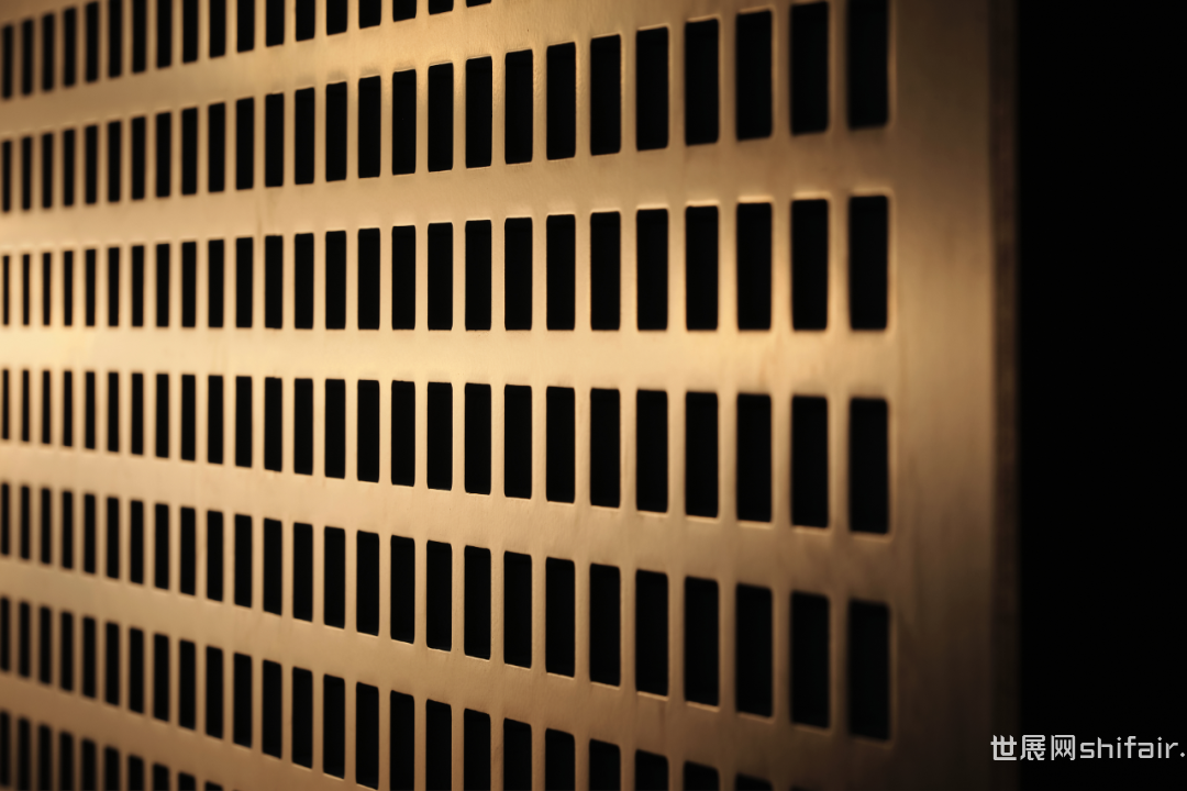 木质格栅矩阵的衔接带来东方韵律,于整体展厅的过渡层次中营造出规律有致的格调,互为内外的视觉语言,保证了空间与形式的真实,也满足了艺术与功能并存的需要。