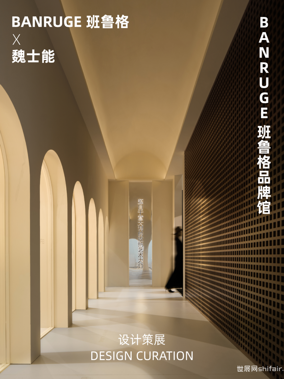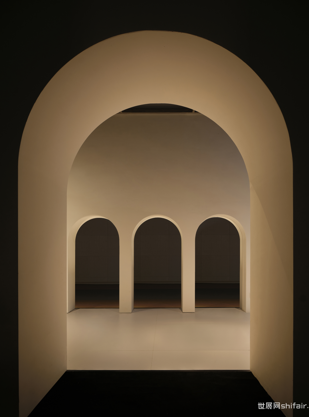 曲线拱门投射下更为盈满的轮廓,时光洄游,携手走进真实的自我。东情西韵,曲直之间的自由写意,在廊道与展厅内墙的场景中渐进回溯。