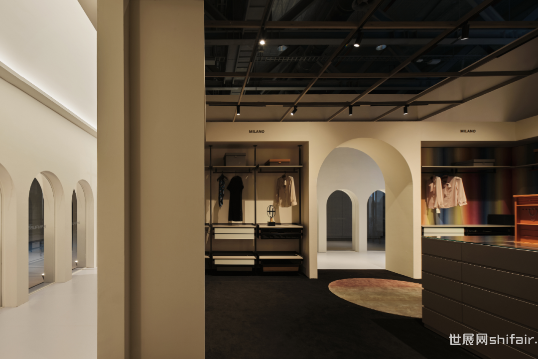 透过无处不在的圆弧拱门,使意式元素在展厅空间内部无限延展风情。同时间格有度的家居收纳系统,则以制为衡,沉淀惊艳的东方利落之美。