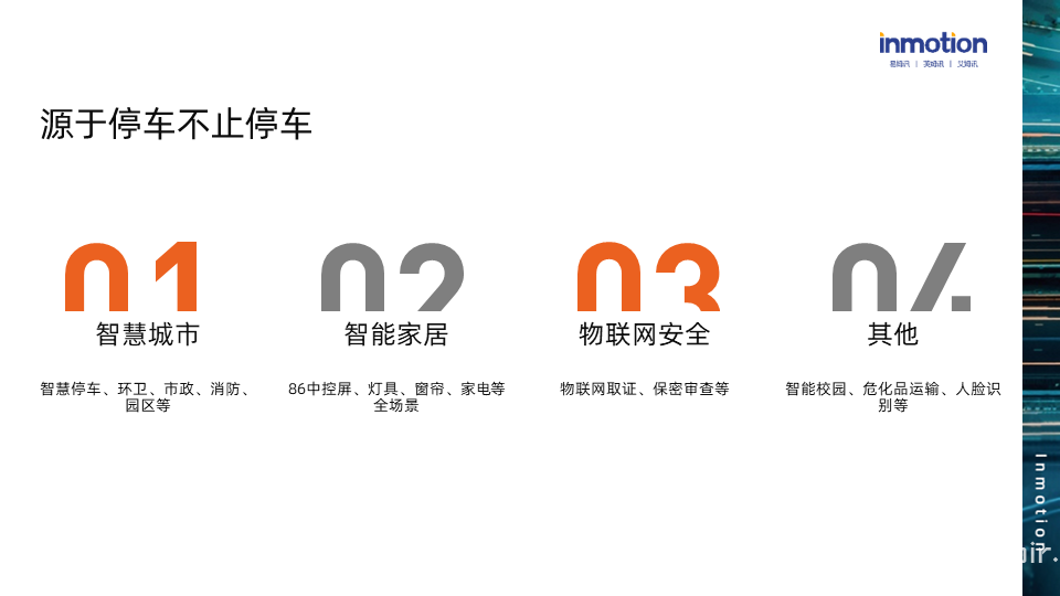 开放的平台接口支持车行导航、人行导航、反向寻车、车位预约等应用;两款高精度定位基站产品均已在上海的智慧停车场库落地交付,有丰富的智慧停车场库案例。