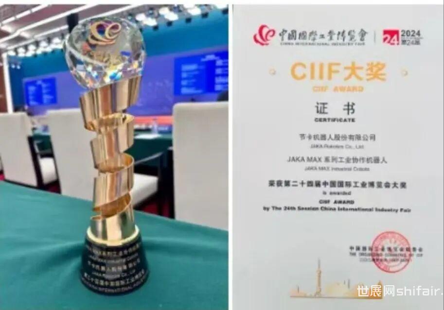 9月24日,中国国际工博会开幕,JAKA MAX系列工业协作机器人获得CIIF大奖——该国际奖项授予“实现关键突破、引领产业发展、具有突出效益的优秀产品和技术”,代表了“中国制造”顶尖高度,具有广泛的全球影响力。这也是继JAKA All-in-one系列产品后,节卡机器人第二次获得工博会大奖。国家机器人检测与评定中心(总部)主任郑军奇先生莅临节卡机器人展台,表示:“协作机器人在保障作业安全、促进人机和谐共处方面发挥重要作用。我们期待与节卡机器人在产品研发、标准制定、检测认证等方面开展更为广泛而深入的合作,推动全球工业自动化转型。”