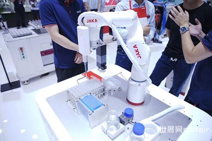 JAKA S 5凭借末端内嵌力控设计,恒力模拟人工寻孔过程,插拔力度自适应,通过夹爪实现不同接口类型线束的柔性插拔,破解通信行业接口规格多、接口小,且金属触点多等作业难点,保证精准快捷作业。 JAKA Mini2协作机器人深入生命科学领域实验室,小巧机器人搭配末端旋转电夹爪,狭窄桌面空间内灵巧作业,完美模拟实验室科学家自动完成取样、移液、取样检测等步骤,解放实验室科学家,以自动化实验室加码智慧实验室变革。今日,全球第一部协作机器人行业发展全景报告——《2024全球协作机器人产业发展白皮书》(以下简称《白皮书》)——由MIR睿工业于JAKA展台隆重发布。上海市浦东新区总工会基层工作部杨光明部长、上海交通大学先进产业技术研究院盛鑫军院长、上海市机器人行业协会陈向阳秘书长等机器人产业上下游权威代表将出席见证。