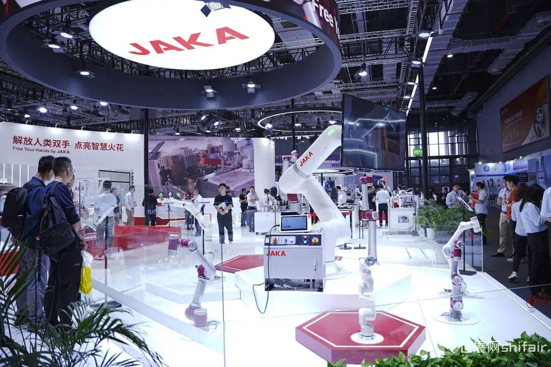 在展台一侧,节卡机器人自主研发的JAKA K-1人形机器人首秀。JAKA K-1人形机器人采用拟人型构造,集大脑、小脑、双臂、双足、力觉传感器和视觉系统等组件为一体,拥有±0.1mm 重复定位精度。节卡机器人研发K-1双臂机器人和K-1人形机器人,基于客户的真实需求和典型需求研发。节卡机器人将以软硬件技术上的深厚积累、过硬的双臂作业能力以及工业场景的应用积累,赋能人形机器人技术落地验证。——节卡机器首席技术官 许雄本次工博会,节卡机器人展出30+行业经典应用,以全系列产品,参与制造业焊接、打磨、上下料、码垛等全方位作业场景,柔性装配、复合联动、丰富工艺,应有尽有。 聚焦汽车智能化与信息化制造,展区深度呈现协作机器人于汽车整车和零部件生产(涵盖检测、喷涂、拧紧、涂胶等环节)的技术工艺,可为汽车产业链厂商提供系统解决方案。