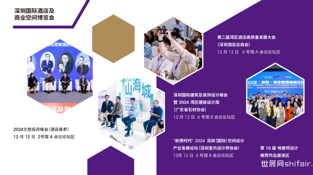 沪深联动,步履不停!2024深圳国际酒店家具、商用定制及软装设计展继上海将于12月接棒续航,继续推动产业链上下游融合升级,聚力拓展好生意新增量。扩大展出规模,优化布局,以期更富商机、高效链接、精准匹配,展出品类紧贴行业热点、市场趋势以及对不断涌现的消费新需求更加聚焦。软装设计、餐饮空间、商业空间、茶生活、康养疗愈、户外休闲、文创潮玩7大板块集中展现引领酒店、餐饮、文旅等行业趋势的新产品、新技术、新服务、新模式和新生态,升级酒店、餐饮及商业空间筹建及运营采购一站式平台!