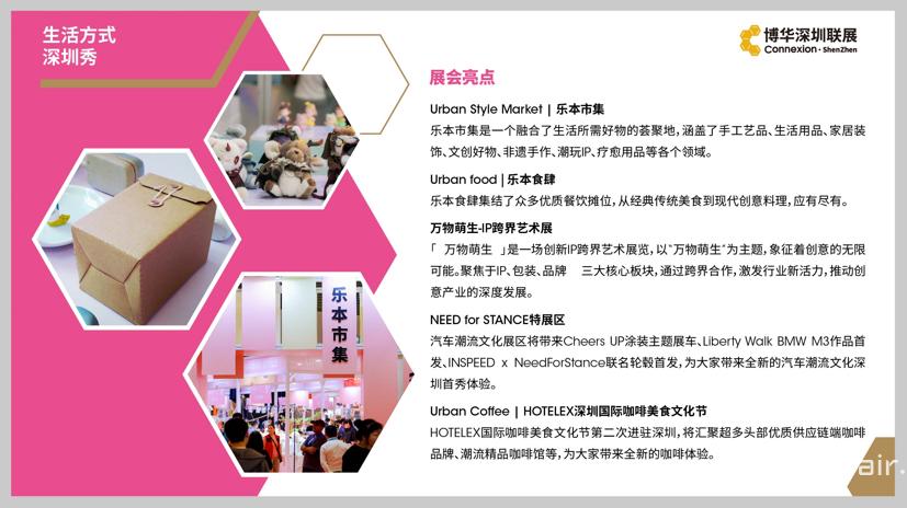作为博华深圳联展的重要组成部分,2024 Urban Style乐本生活方式展全新升级,以深圳为起点,辐射全球,汇聚“人货场”新蓝海,致力于打造潮流全线生活方式沉浸式体验平台。在这里,都市生活的多元美学与风尚将得到充分展示,进一步推动都市生活方式的升级与迭代,让每一位参与者都能感受到生活的无限可能与美好。URBAN STYLE