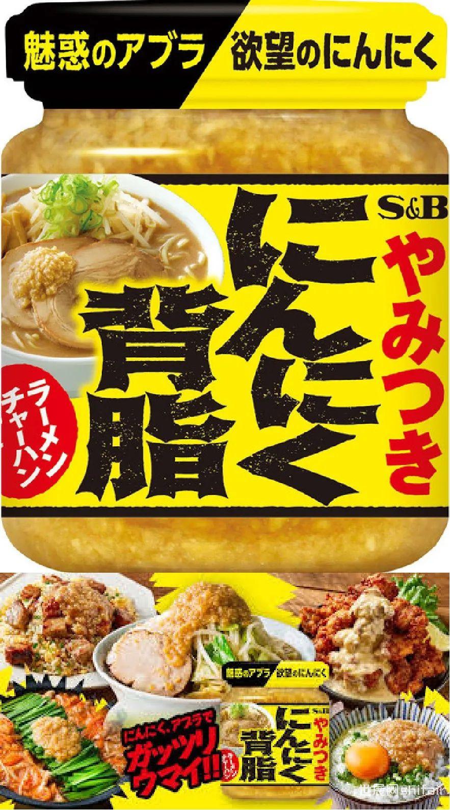 图源: 食品产业新闻社 2、S&Bにんにく背脂(蒜蓉背脂)受新型冠状病毒影响,居家就餐场景需求急剧增加,S&B Food为此推出了一款蒜蓉背脂调味料。该产品主要含有大蒜、酱油、猪油、猪骨提取物,重点突出大蒜粒的口感特征,让消费者在家中也能轻松享用到“猪肉蒜蓉拉面”的美味体验。此外,这款配料不仅适用于拉面,搭配炒饭、火锅、烤肉、煎饺也十分合适。据悉,产品推出 3 个月内累计销量达到 100 万瓶。上市日期:2021年8月9日售价:110g/350JPY
