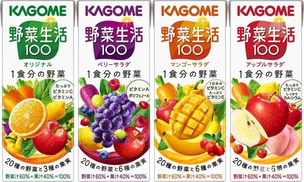 图源:桃屋官网 4、野菜生活100 シリーズ(蔬菜生活100系列)日本可果美KAGOME的蔬菜生活100%混合蔬果汁是一款老少皆宜、健康营养又实惠的产品。原料方面,生产时所用的蔬菜食材全部来自KAGOME自家农场,本土自控种植“合同”培育,质量筛选经过严格把关。而独特的RO冷压榨工艺,100%新鲜果蔬压榨,无添加,尽可能保留了食材原本风味和营养,比生吃蔬菜吸收到的营养更有效率。此外,每种口味果蔬汁均低脂低卡低钠,富含多种维生素,至少混合10多种水果蔬菜,营养均衡。果汁喝起来是甜的,但没有添加剂和糖分,所有甜味都是来自天然食材,喝了也没负担,尤其适合正在减肥、对热量和糖分摄取有上限要求、需要控制胆固醇的人群。同时,每瓶都配有吸管,无论上班路上、午休时间、加班熬夜,随时补充营养的便携包装对于办公、上学的消费者来说同样适合。上市日期:1995年售价:200ml/open价格