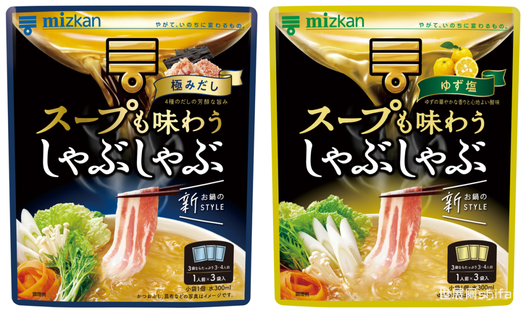 图源: 三岛食品官网 8、スープも味わうしゃぶしゃぶシリーズ (连汤一同品尝的涮涮锅系列)近年来可以轻松吃肉、大口吃菜的涮涮锅深受日本消费者的欢迎。Mizkan推出的连汤一同品尝的涮涮锅系列是一种新型涮涮锅汤底,消费者除了可以享受涮涮锅调制出来的美味肉品和菜品,还可以品尝到浓郁温暖的汤品。这款产品为浓缩包装,可以根据人数需要调制从一个人到一家人享用的汤量。目前产品推出了浓厚高汤和盐味柚子两种风味上市日期:2021年8月4日售价:32g*3/380JPY