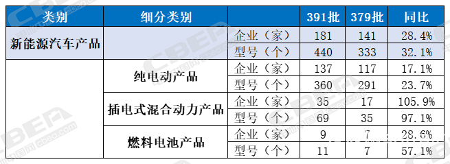 经统计,第391批公告中,申报新能源汽车产品的有181家企业的440个型号。相较2024年首批(第379批)公示的141家企业333个型号,同比增加107个型号,增幅超32%。第391批公告中,纯电动产品共137家企业360个型号、插电式混合动力产品共35家企业69个型号、燃料电池产品共9家企业11个型号。纯电动、插混、燃料电池产品企业和产品型号数量,同比第379批均有所增加。其中,插混企业数量同比增长105.9%,产品型号同比增长97.1%,增速较快。按汽车大类划分,此次公告的新能源车型中,包括新能源乘用车87款、新能源客车26款、新能源专用车327款,同比在数量上分别增加2款、6款、99款。在87款新能源乘用车中,从配套电池类型看,配套磷酸铁锂、磷酸锰铁锂、三元锂电池的车型分别为69款、2款、16款。 从新能源乘用车电池配套企业来看,宁德时代配套26款、弗迪电池配套22款、中创新航配套11款、亿纬动力配套8款、欣旺达配套6款(含东昱欣晟)、国轩高科/得壹能源各配套4款、瑞浦兰钧/蜂巢能源/极电新能源各配套2款、鹏辉能源/利信(江苏)能源/爱尔集新能源(南京)/北电爱思特各配套1款。其中,有多款车型由2家电池企业共同配套。